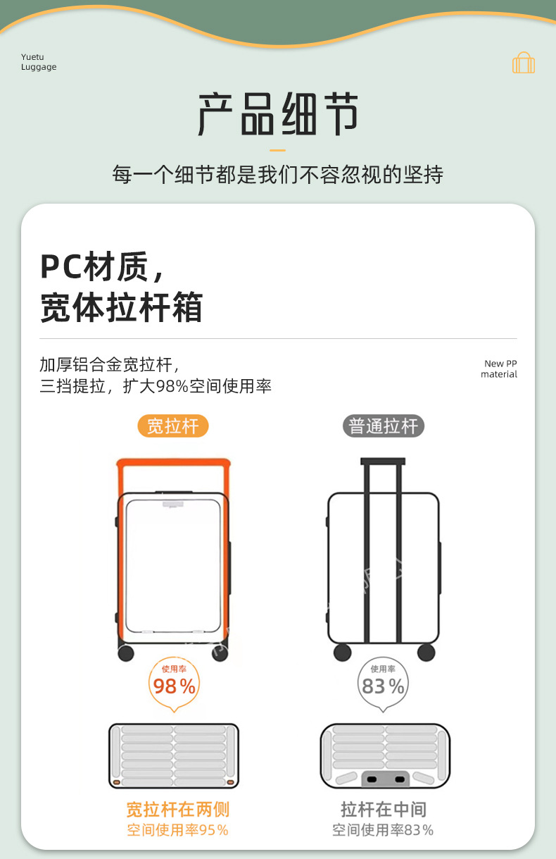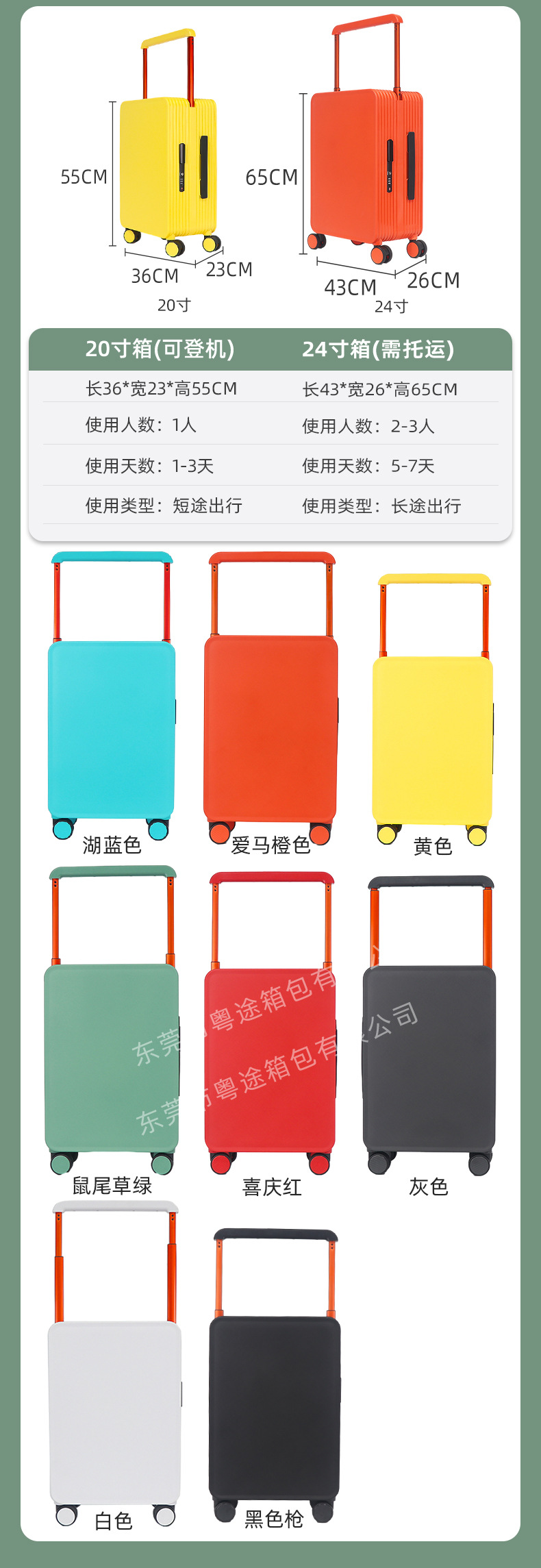 재고 PC 사출 성형 와이드 트롤리 케이스 여행 대용량 24 인치 여행 가방 단색 비즈니스 비밀번호 잠금 가방스토어 가기