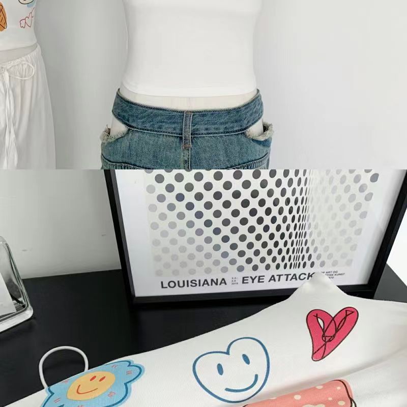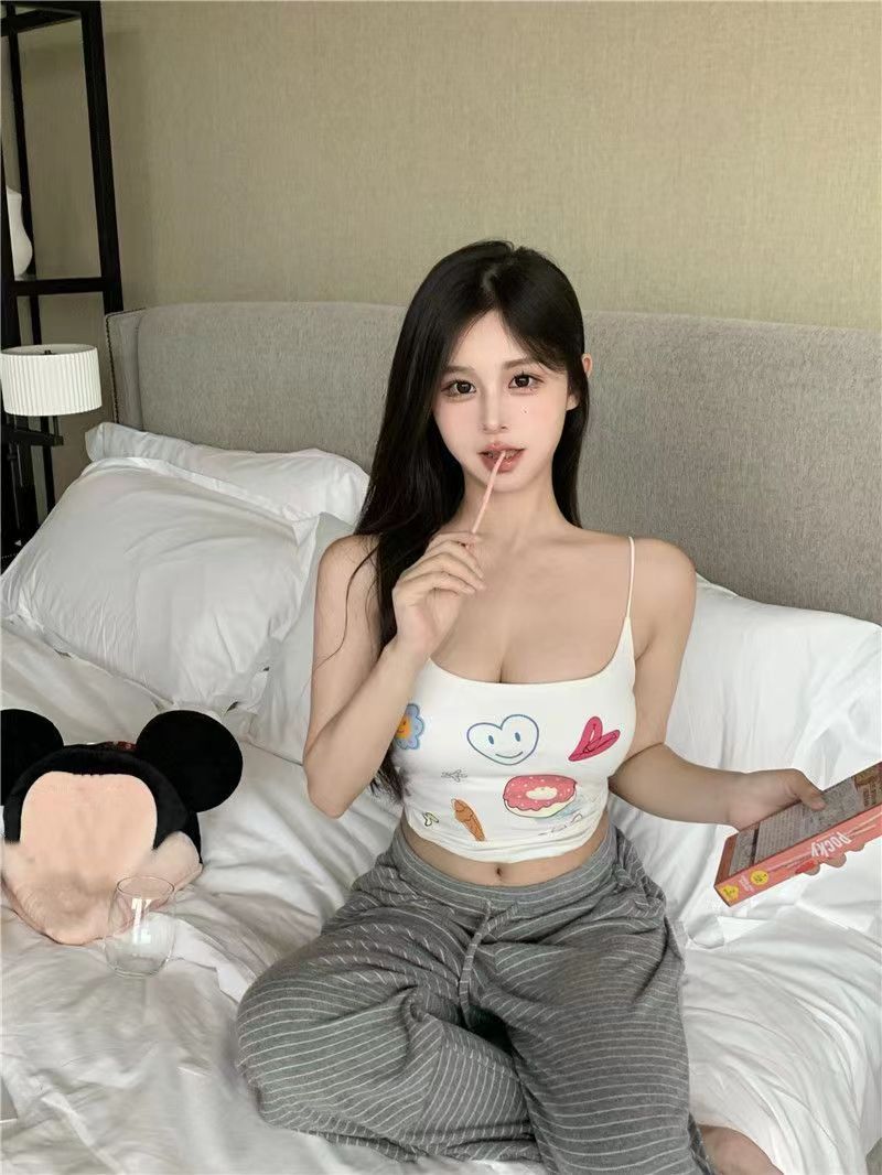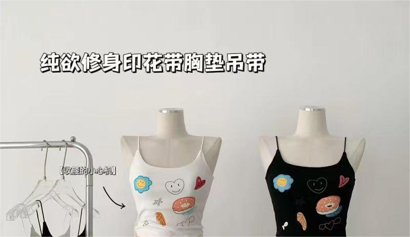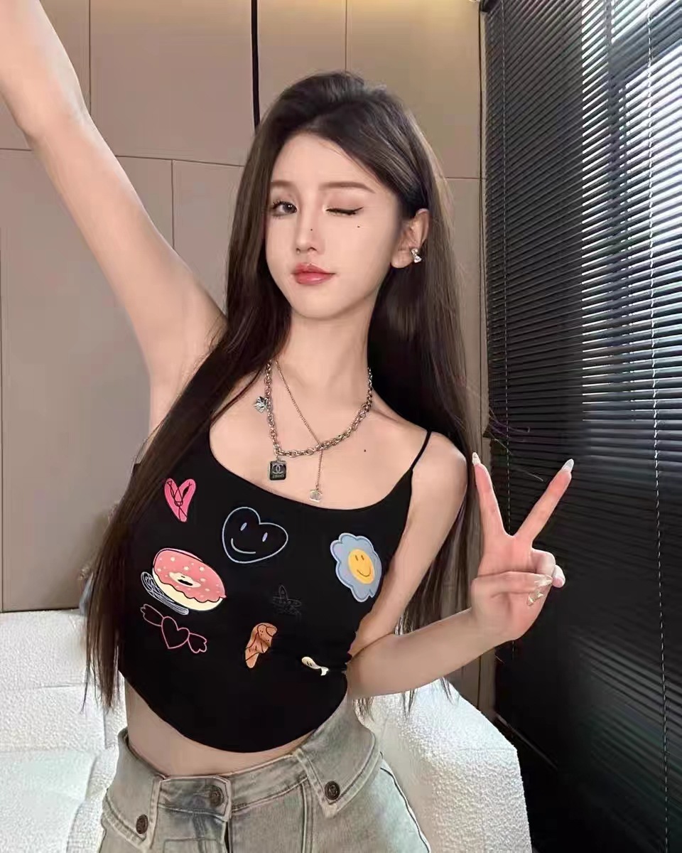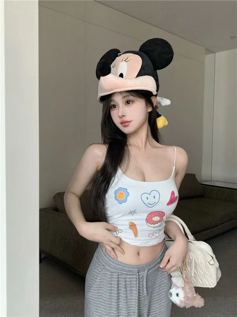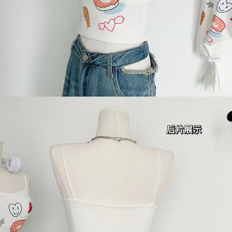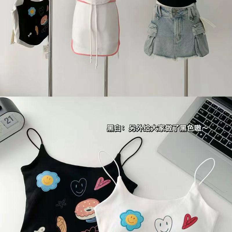 인터넷 트렌디 스파이스 걸 아름 다운 백 낙서 캐미솔 조끼 여성용 인쇄 벨트 가슴 패드 내부 착용 외부는 짧은 탑 튜브 탑 착용스토어 가기