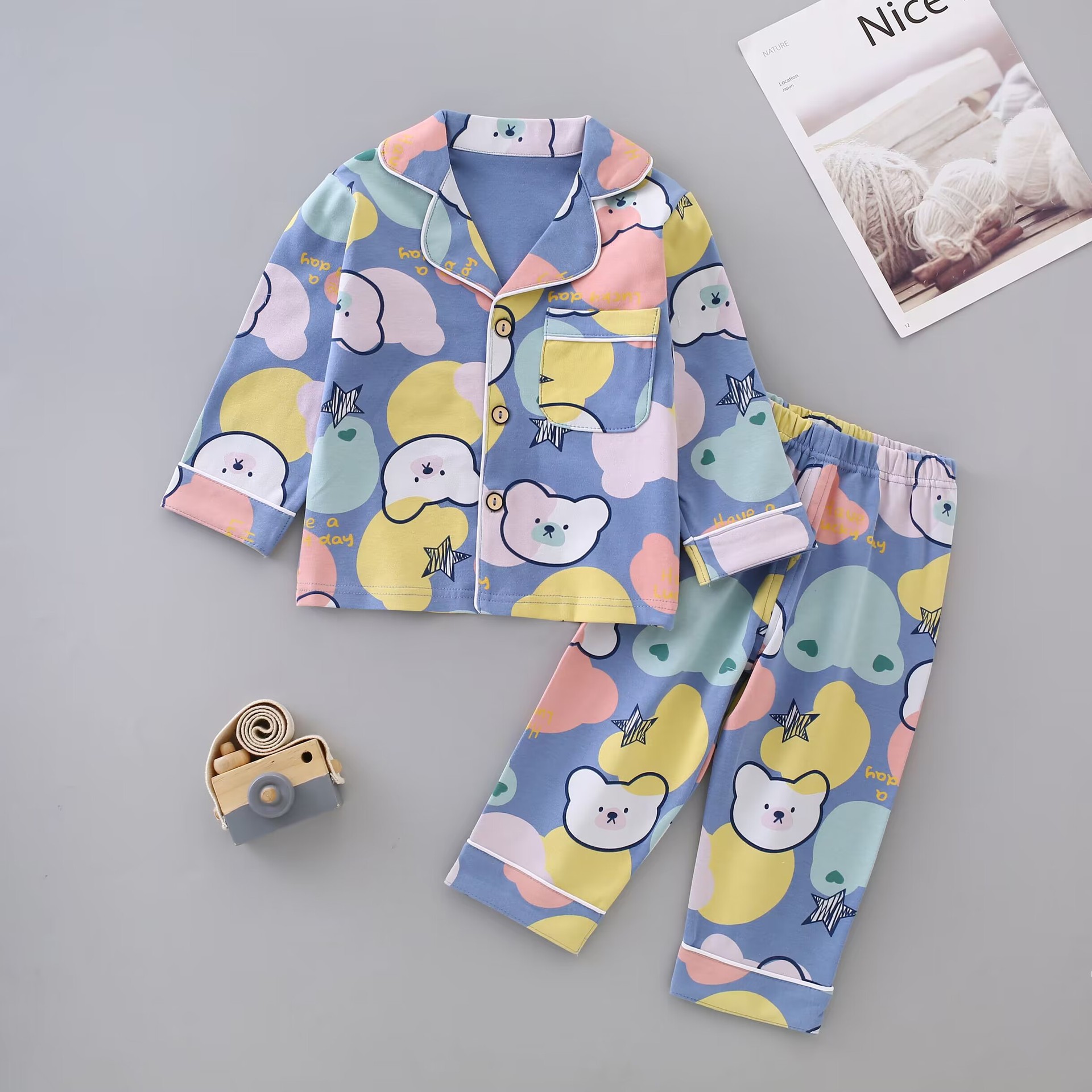 아동용 가디건 홈웨어 세트 남녀 어린이용 코마면 잠옷 긴팔 한국 스타일 부드럽고 편안함스토어 가기