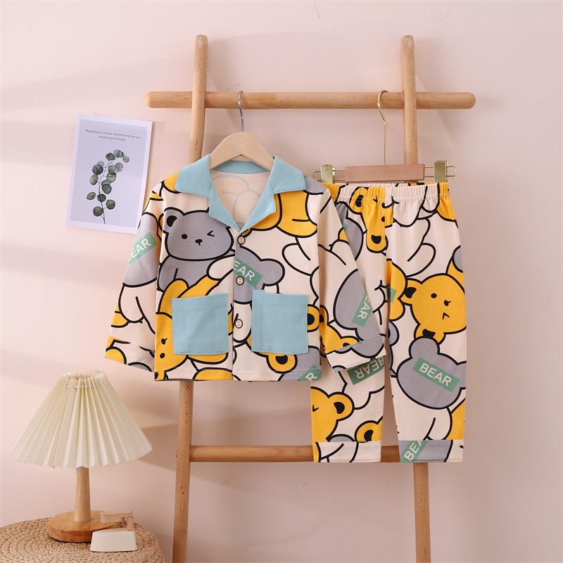 아동용 가디건 홈웨어 세트 남녀 어린이용 코마면 잠옷 긴팔 한국 스타일 부드럽고 편안함