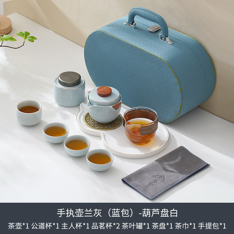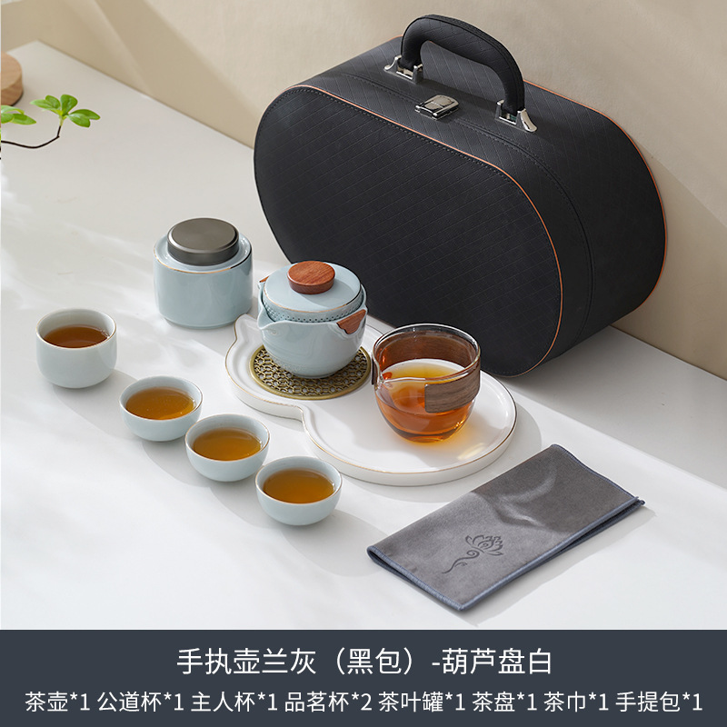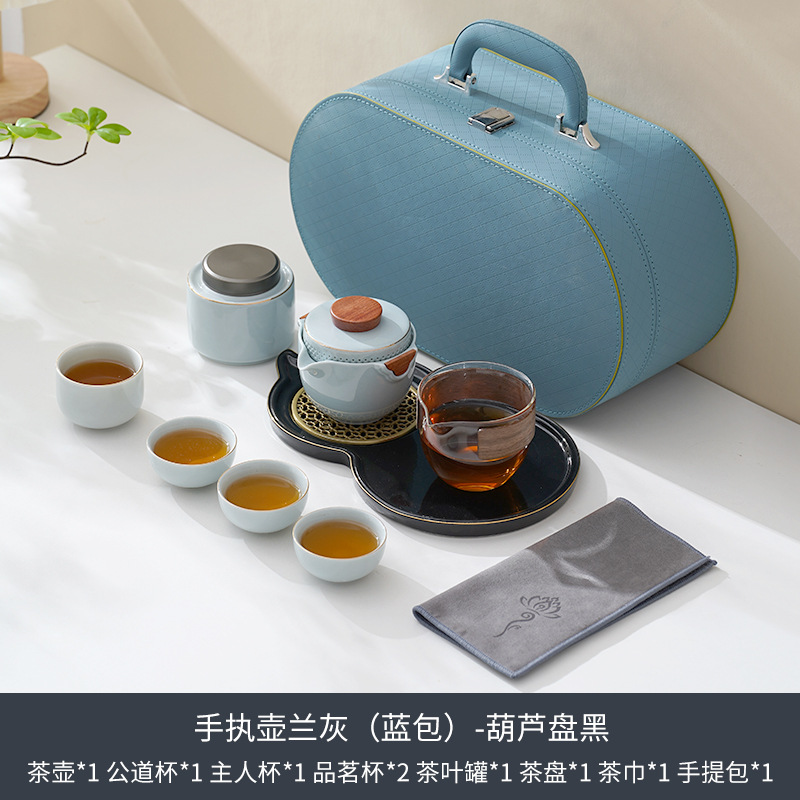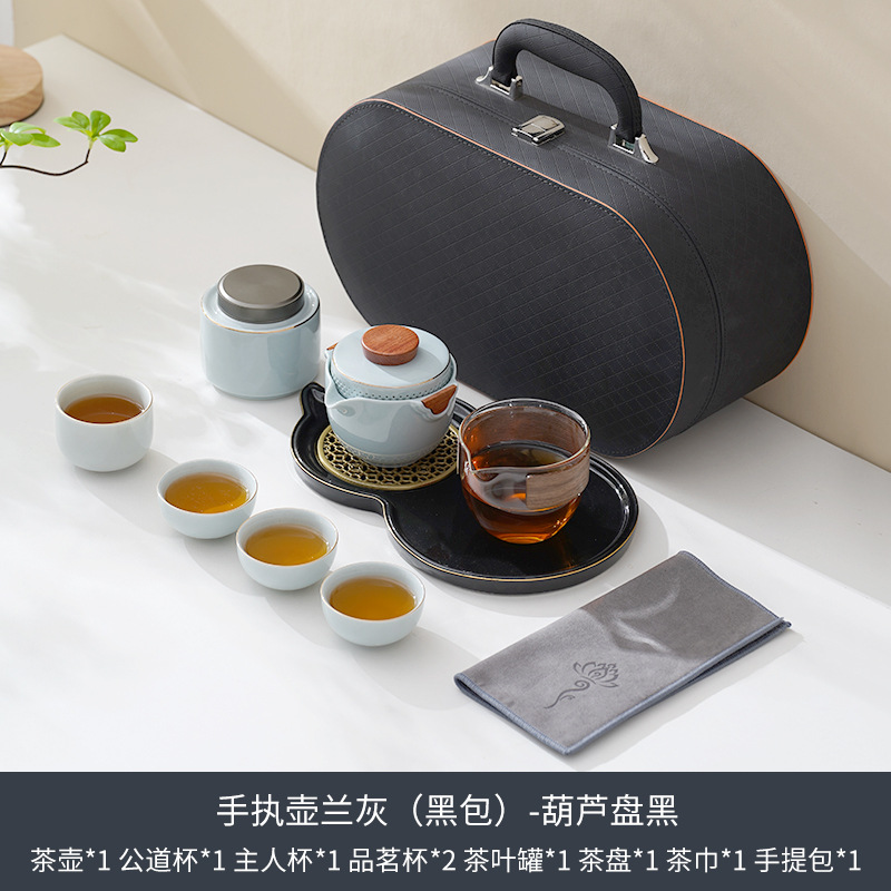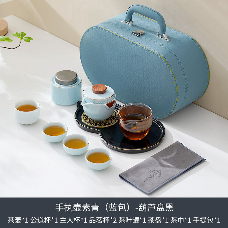• 휴대용 냄비 블루 애쉬 (블랙 백)-조롱박 차 트레이 화이트 핸드 포트 그린 (블루 백)-조롱박 차 트레이 블랙