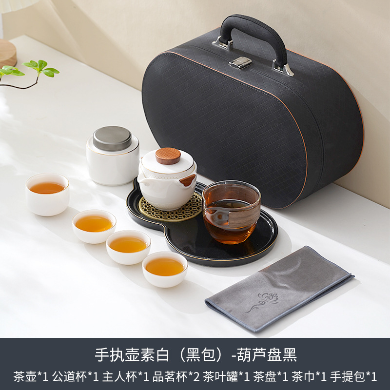 • 휴대용 냄비 무지 화이트 (검정 가방)-조롱박 차 트레이 블랙