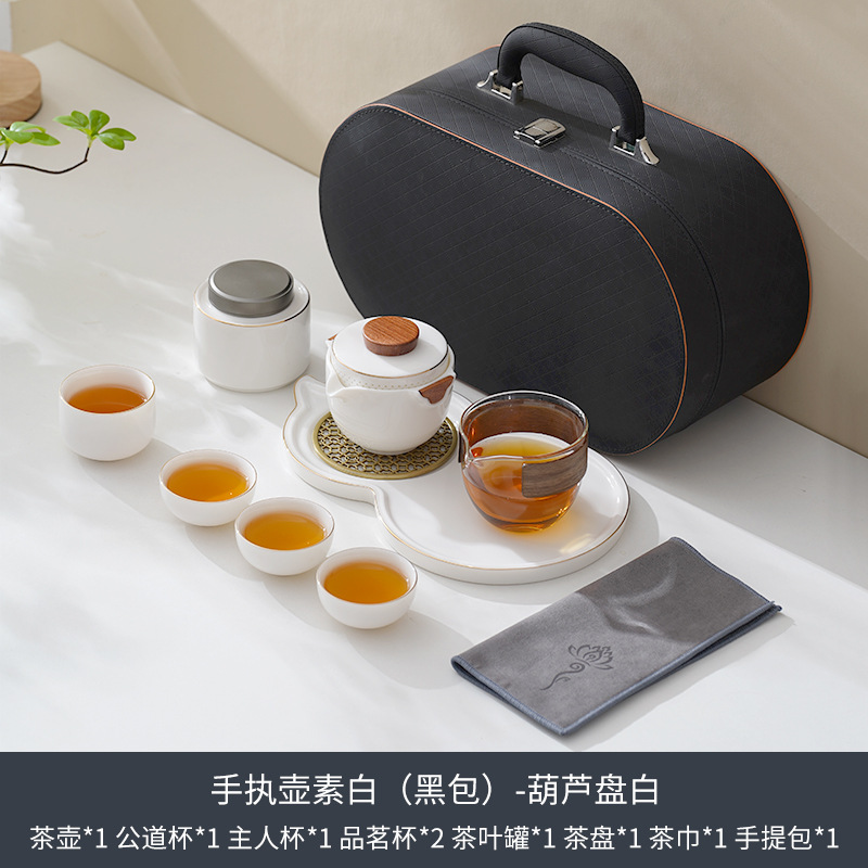 • 휴대용 냄비 일반 흰색 (검정 가방)-조롱박 차 트레이 화이트