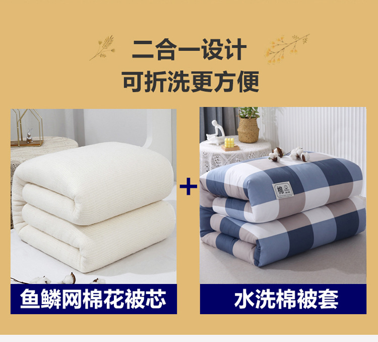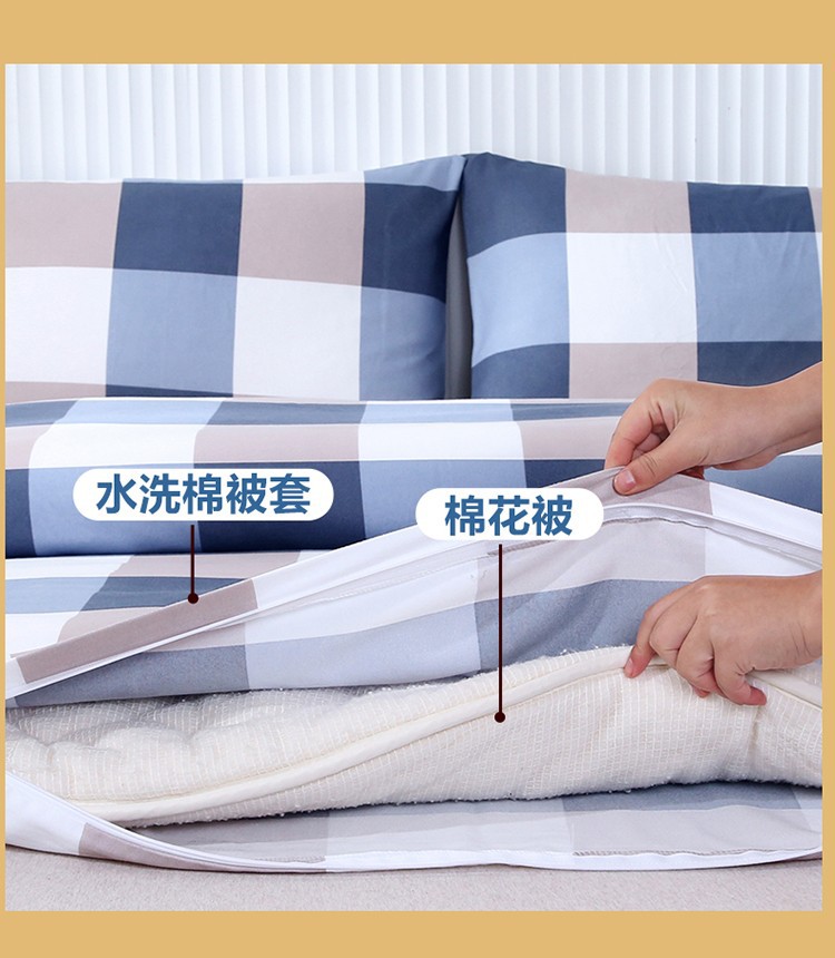 신장 면 이불 루퍼 탈착식 및 빨 격자 무늬 물 세척 면 더블 이불 학생 싱글 기숙사 커버 패드 이불 코어