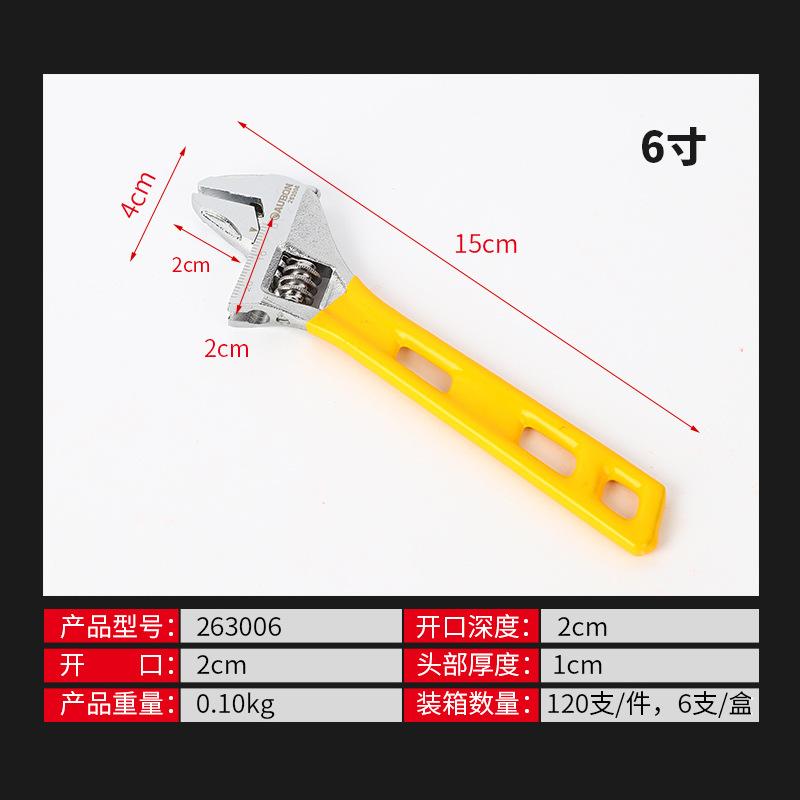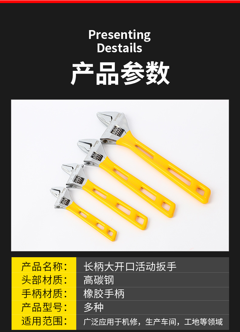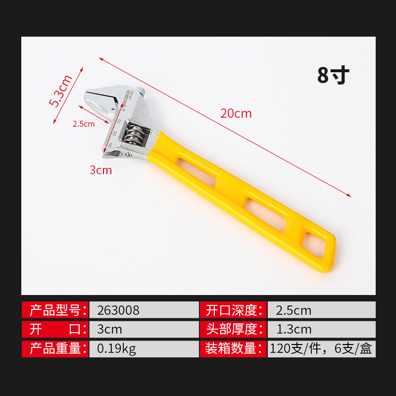 롱 핸들 대형 오픈 엔드 조절 렌치 8 인치 롱 핸들 욕실 렌치 크롬 도금 플라스틱 핸들 이동식 렌치 도매공급스토어 가기
