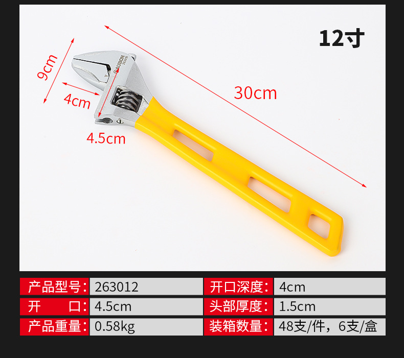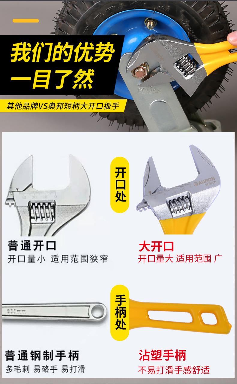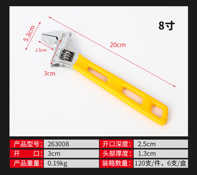롱 핸들 대형 오픈 엔드 조절 렌치 8 인치 롱 핸들 욕실 렌치 크롬 도금 플라스틱 핸들 이동식 렌치 도매공급