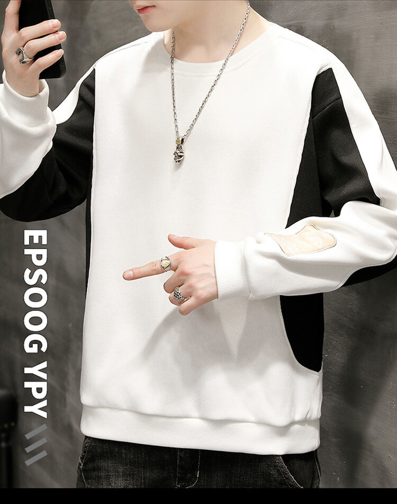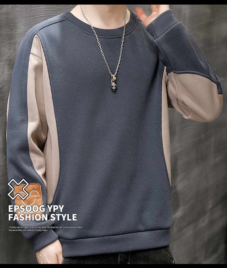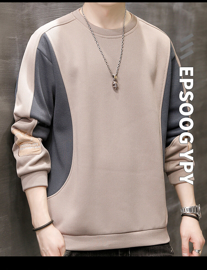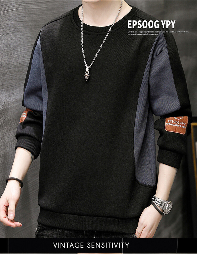 봄, 가을 남성용 헤비급 스웨트 셔츠 스플 라이스 긴팔 루즈 대형 라운드 넥 트렌디 바닥 셔츠 다목적 남성 의류스토어 가기