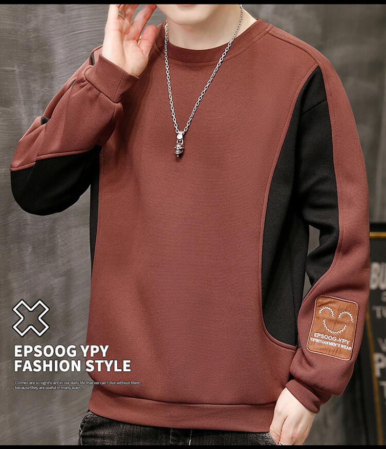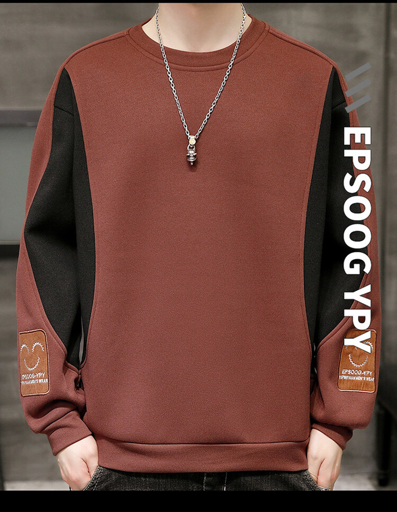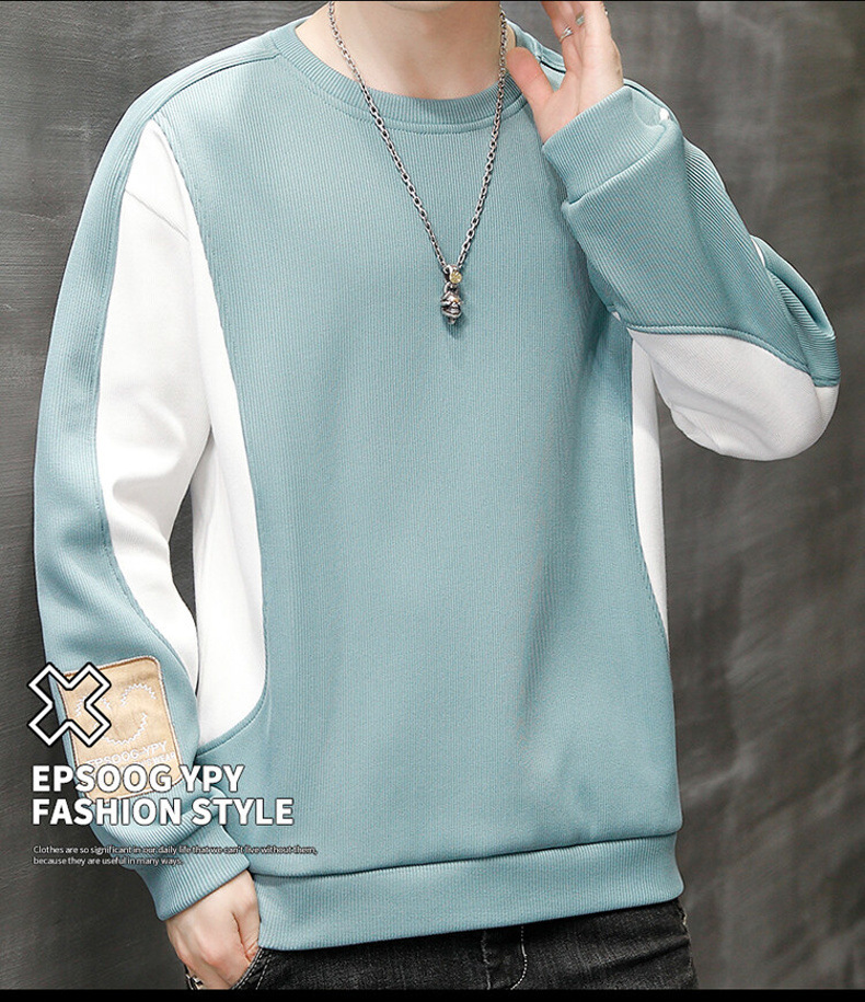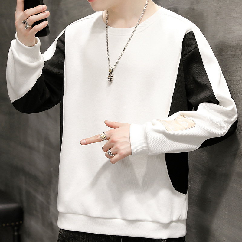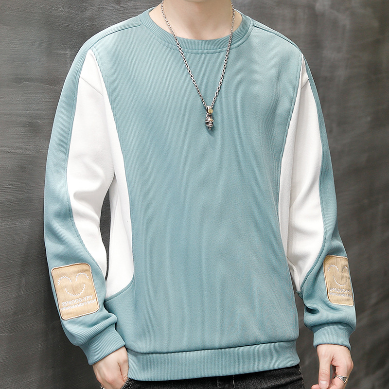 봄, 가을 남성용 헤비급 스웨트 셔츠 스플 라이스 긴팔 루즈 대형 라운드 넥 트렌디 바닥 셔츠 다목적 남성 의류스토어 가기