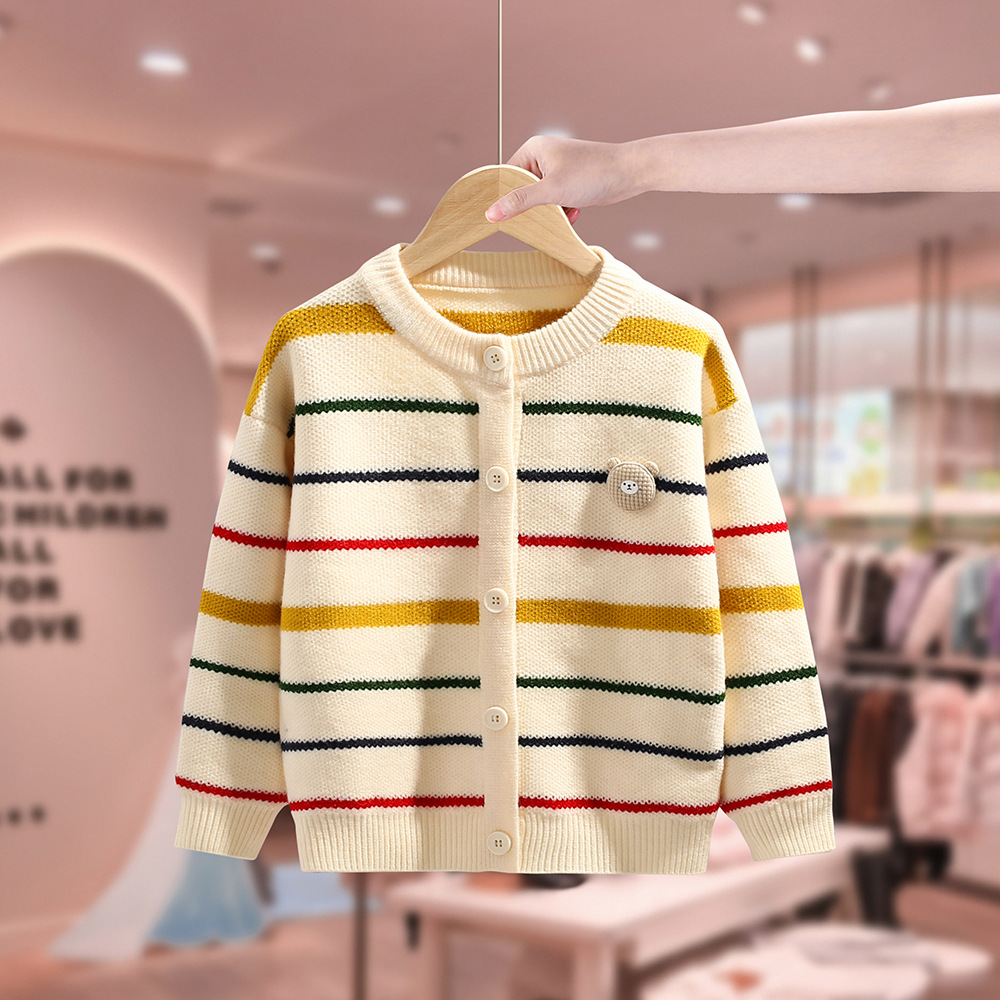 여아용 코트 봄 가을 2025 신상 스웨터 어린이용 스트라이프 카디건 중대형 어린이 가을옷 스웨터