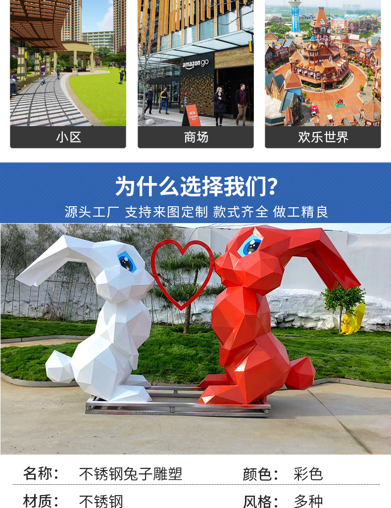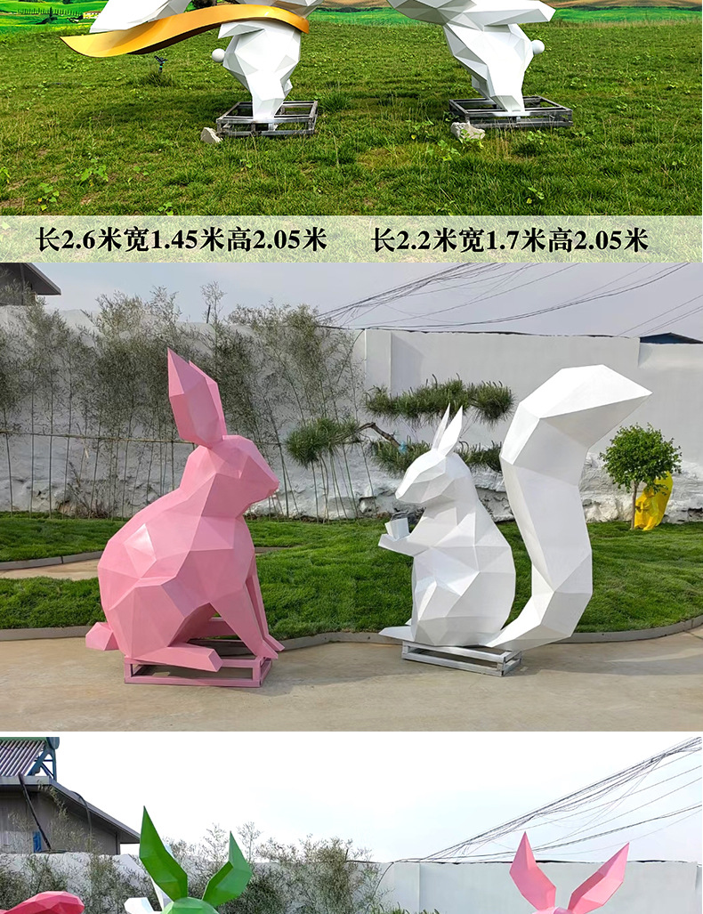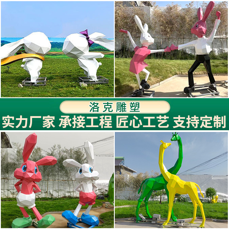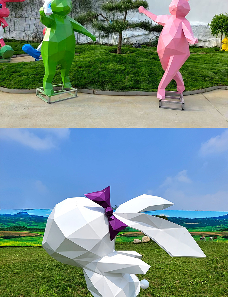 대형 스테인레스 스틸 기하학적 동물 조각 공원 광장 스테인레스 스틸 토끼 조각 장식 그림 기하학적 조각