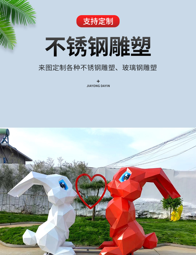 대형 스테인레스 스틸 기하학적 동물 조각 공원 광장 스테인레스 스틸 토끼 조각 장식 그림 기하학적 조각스토어 가기