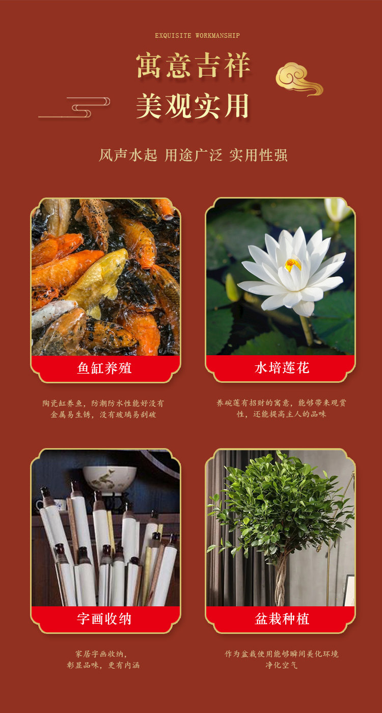 세라믹 어항 레드 빌라 홈 장식품 거북이 물 연꽃 연꽃 화분 안뜰 대형 탱크 나무 심기 물고기 키우기 탱크스토어 가기