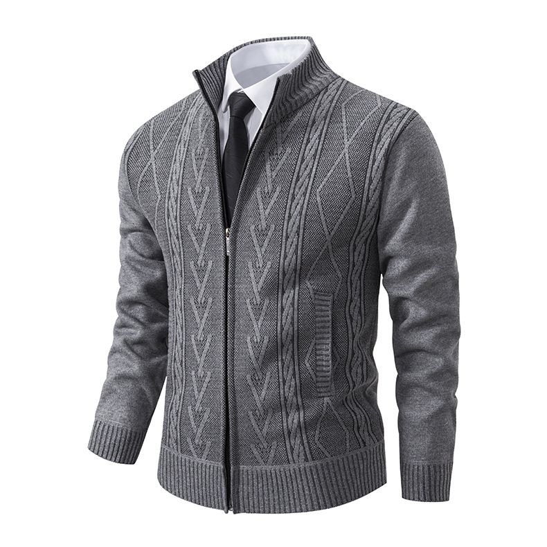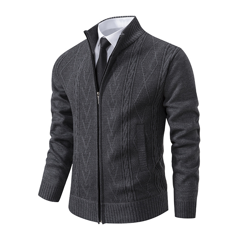 23 크로스 보더 새로운 남성 가을과 겨울 카디건 스탠드 칼라 스웨터 자카드 코트 두꺼운 따뜻한 캐주얼 스웨터