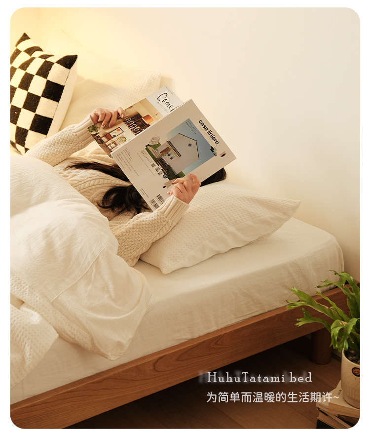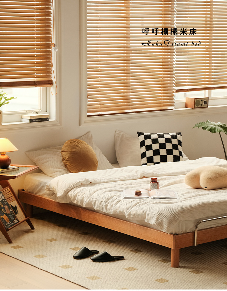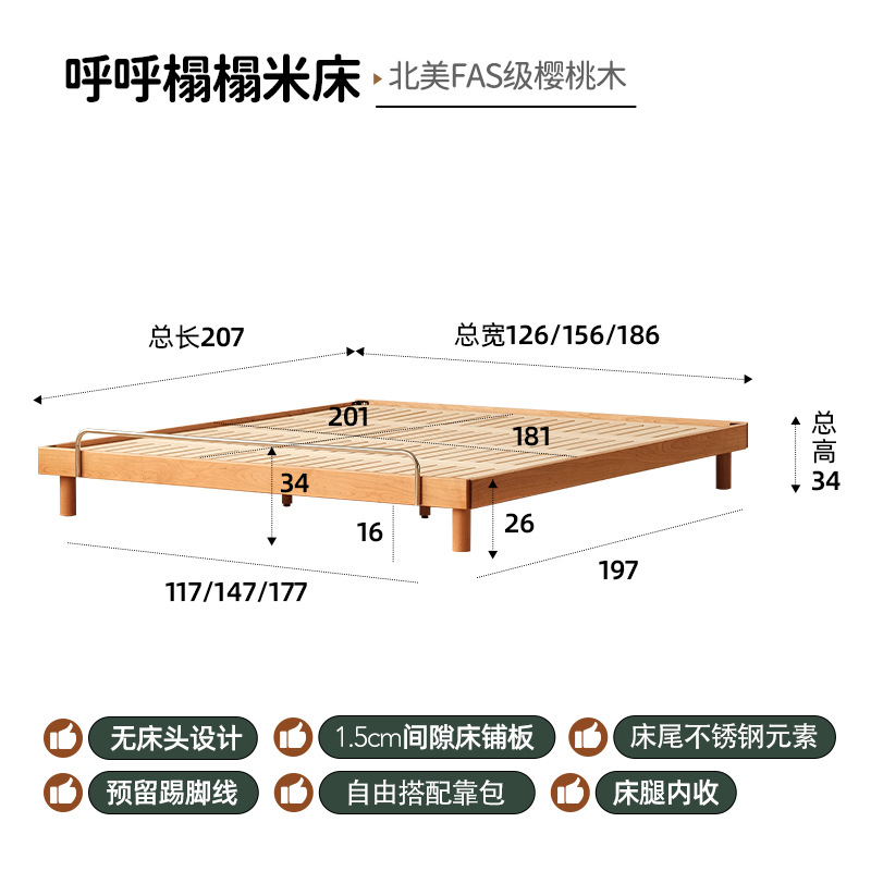 작은 아파트 다다미 침대 북유럽 단단한 나무 더블 침대 북미 체리 나무 가구 1.5m 침대 프레임 침대 옆이없는 침대스토어 가기
