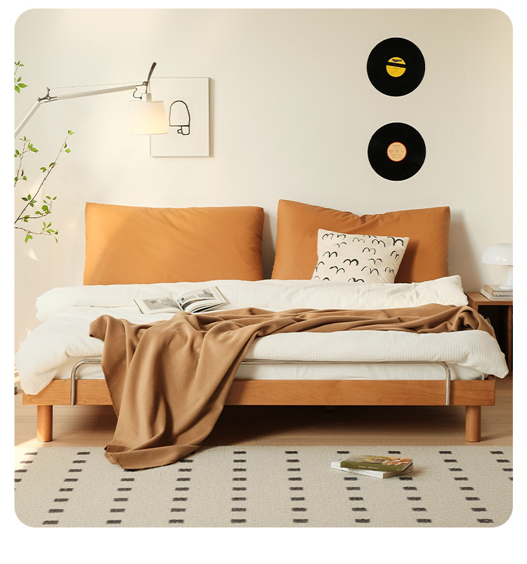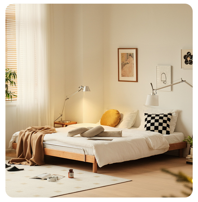 작은 아파트 다다미 침대 북유럽 단단한 나무 더블 침대 북미 체리 나무 가구 1.5m 침대 프레임 침대 옆이없는 침대