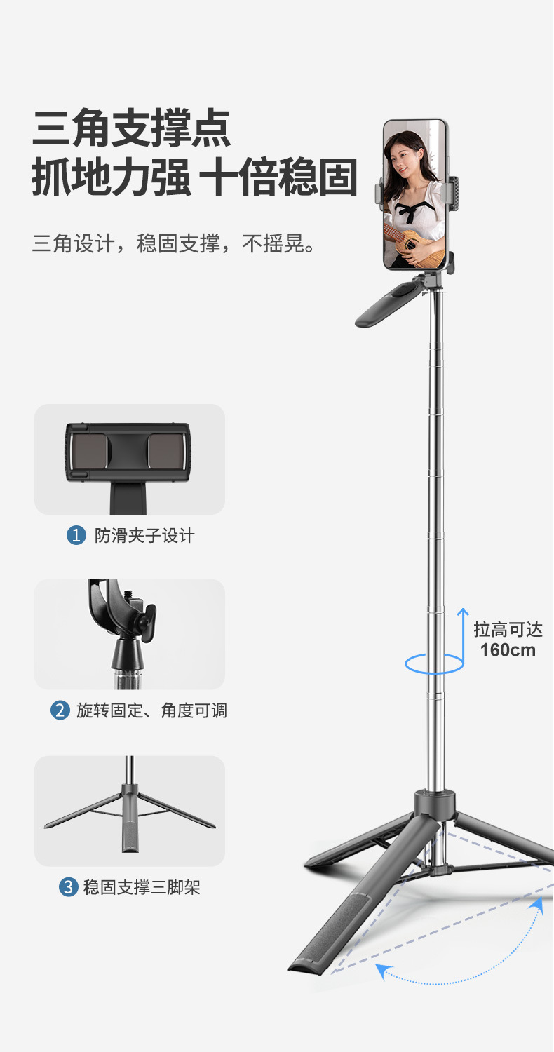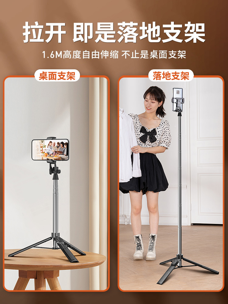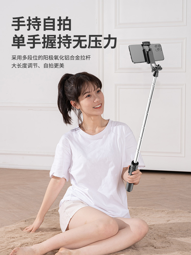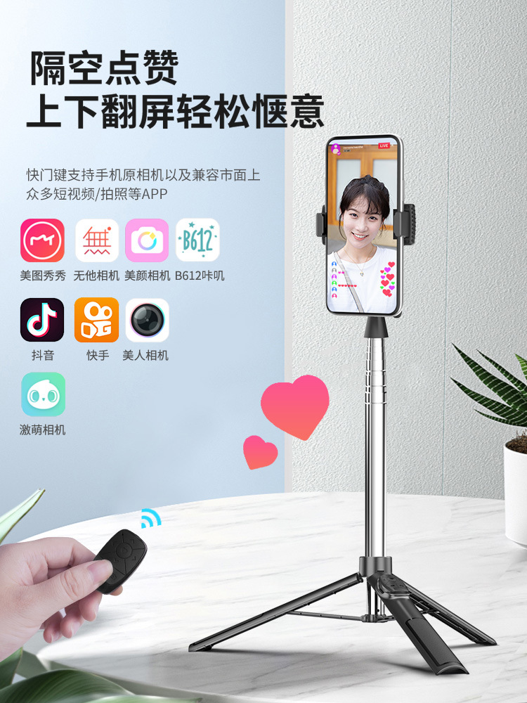 Junhong 블루투스 셀카 스틱 스테인레스 스틸 야외 사진 유물 휴대용 통합 모바일 라이브 삼각대