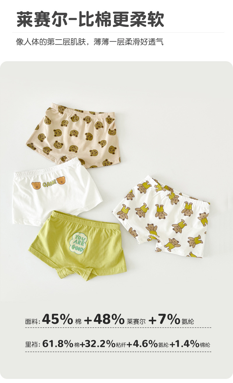 남아 속옷 면 2023 가을 여아 복서 반바지 어린이 소프트 리오셀 코튼 빅 남아 복서 속옷스토어 가기