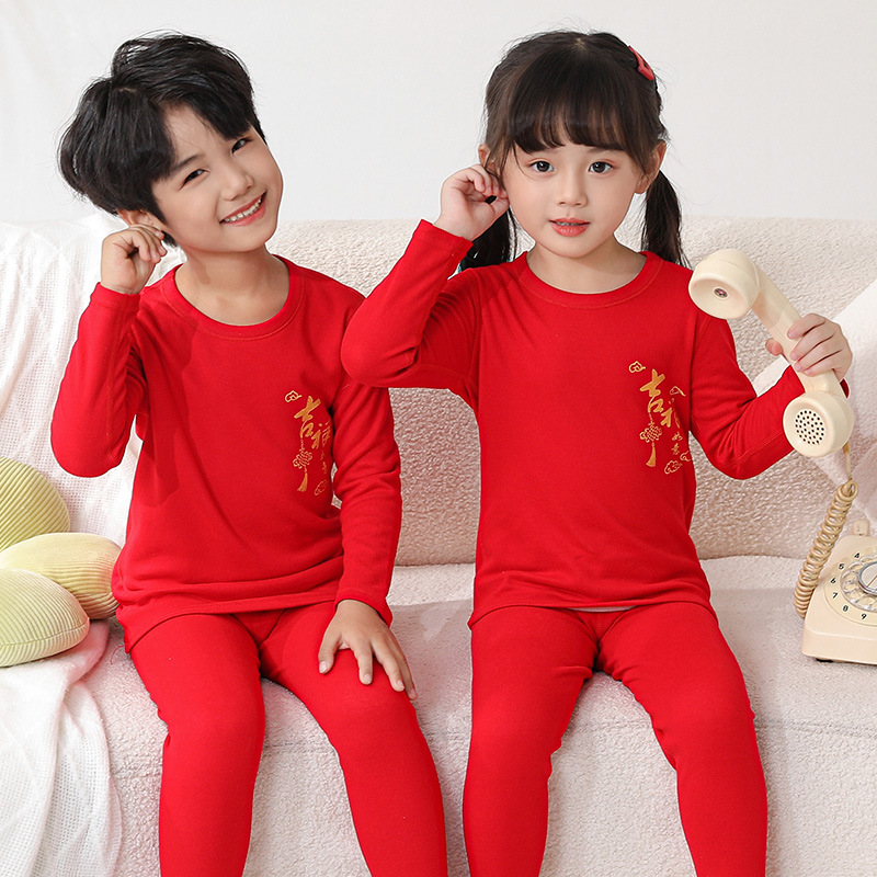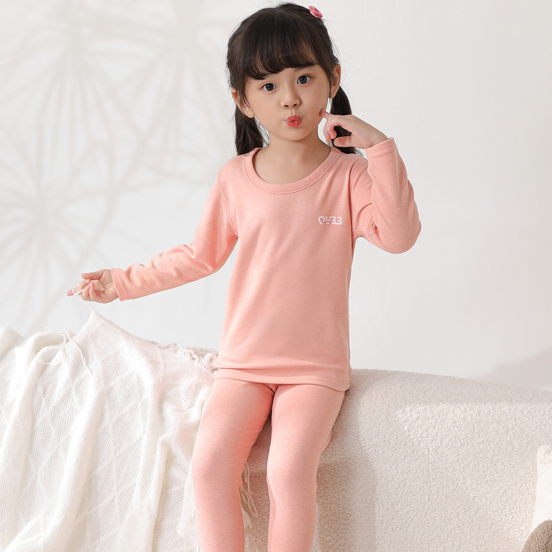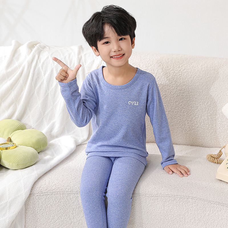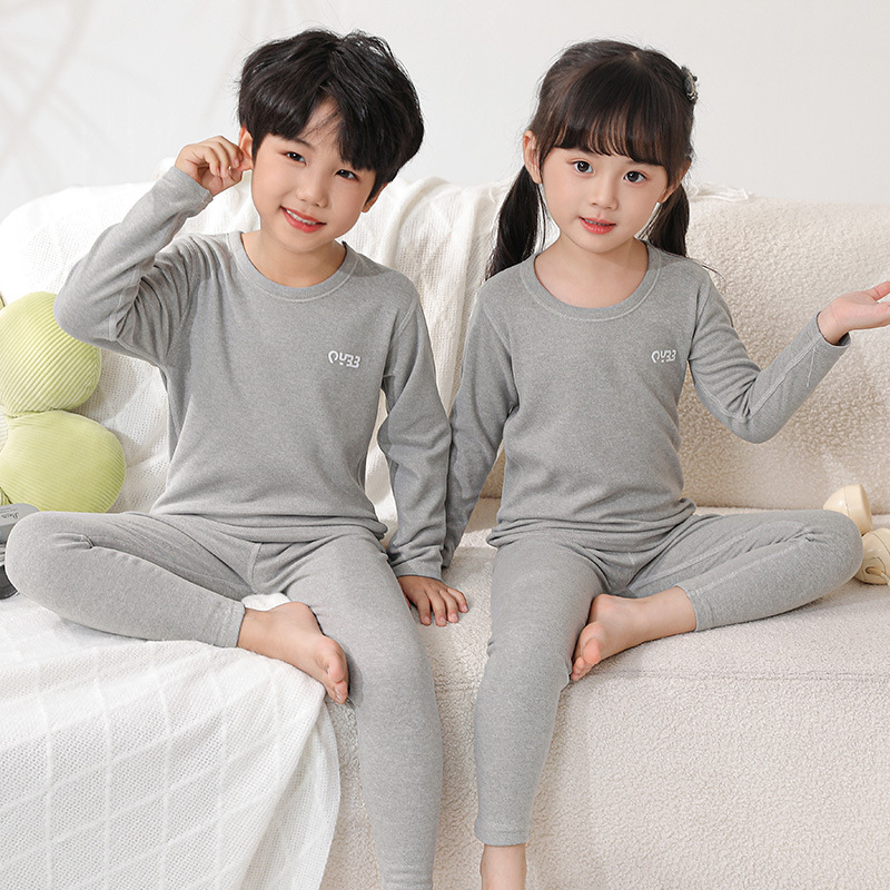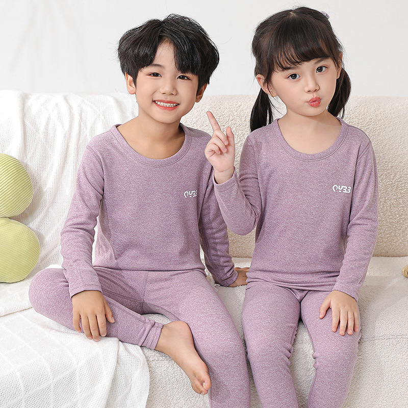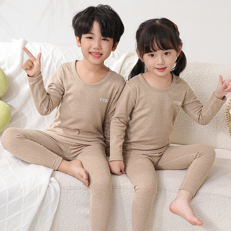 어린이 가을과 겨울 울 실크베이스 열 속옷 세트 라운드 넥 단색 홈 의류 소년과 소녀를위한 가을 바지스토어 가기