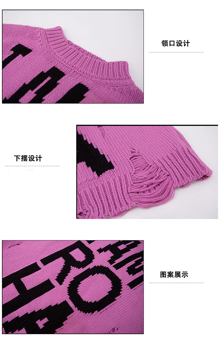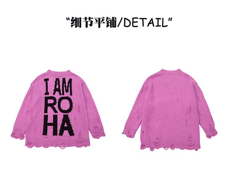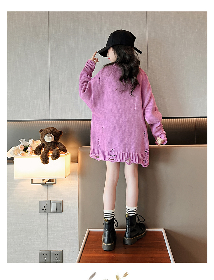 여자 찢어진 스웨터 느슨한 2024 가을 옷 어린 소녀 다목적 편지 중간 길이 긴 소매 라운드 넥 니트 탑스토어 가기