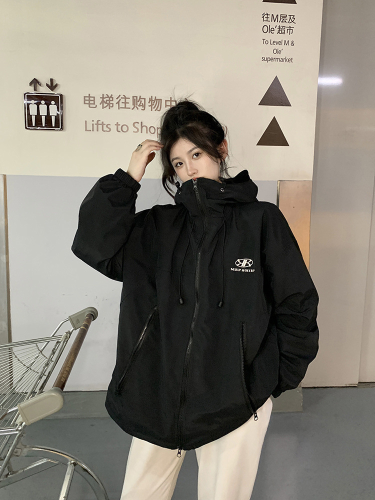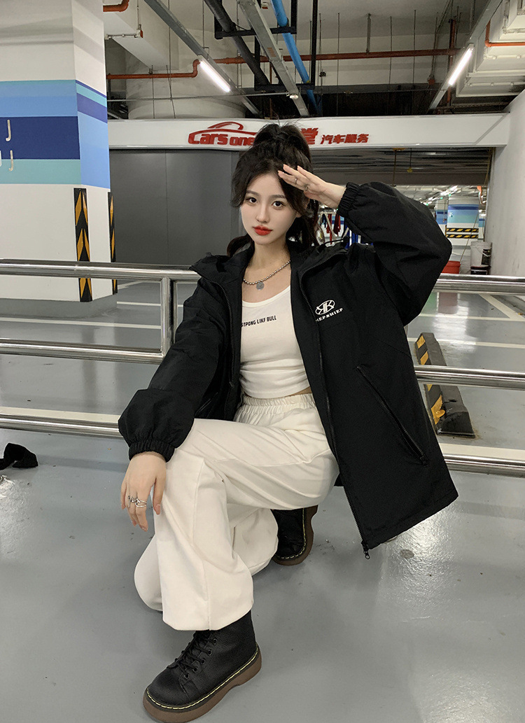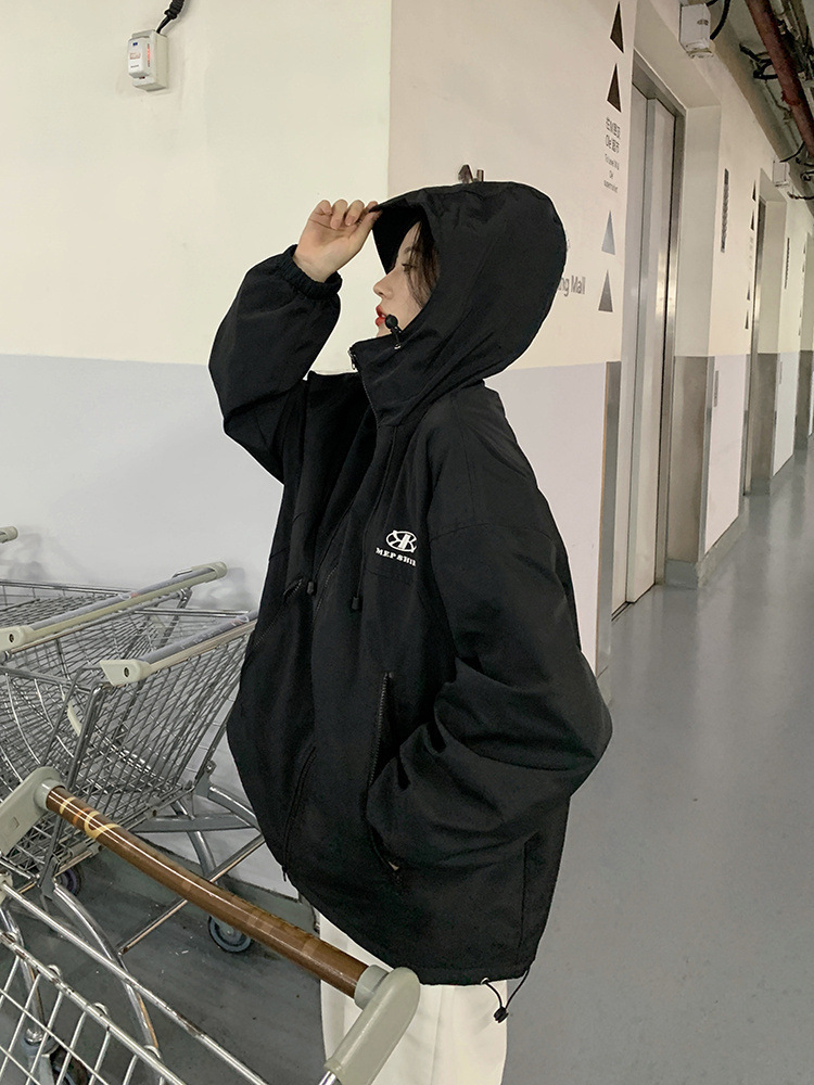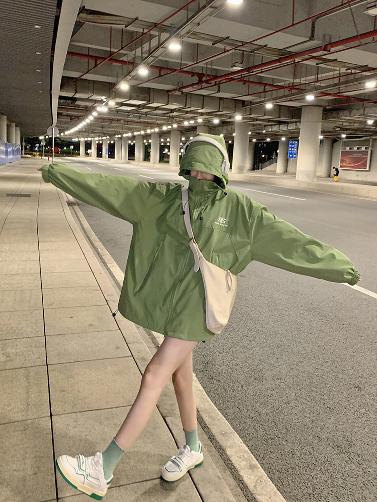 2023 한국 스타일 후드 재킷 코트 여자의 가을 녹색 느슨한 하라주쿠 BF 스타일 우아한 긴 소매 유행 재킷스토어 가기