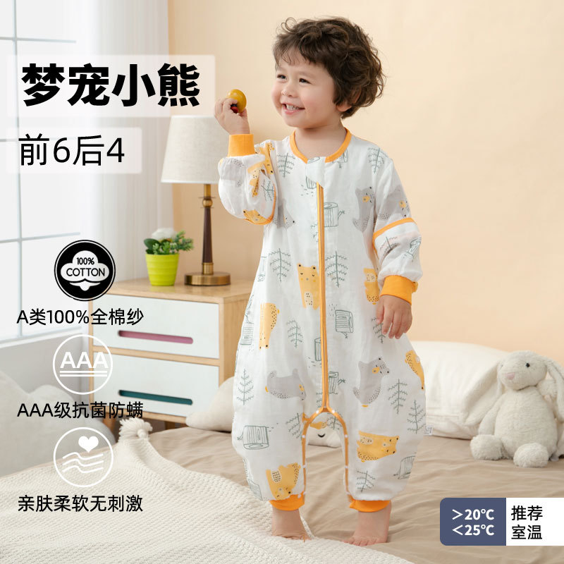 아기 거즈 침낭 봄 가을 얇은 아기 다리 분할 침낭 어린이 순면 킥 방지 이불 다리 분할 유물 잠옷스토어 가기