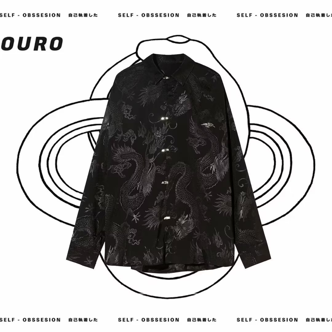 새로운 중국 용 프린트 중국 스타일 셔츠 남자의 긴팔 캐주얼 느슨한 Duffian Tang 세트 남자의 셔츠 탑스토어 가기