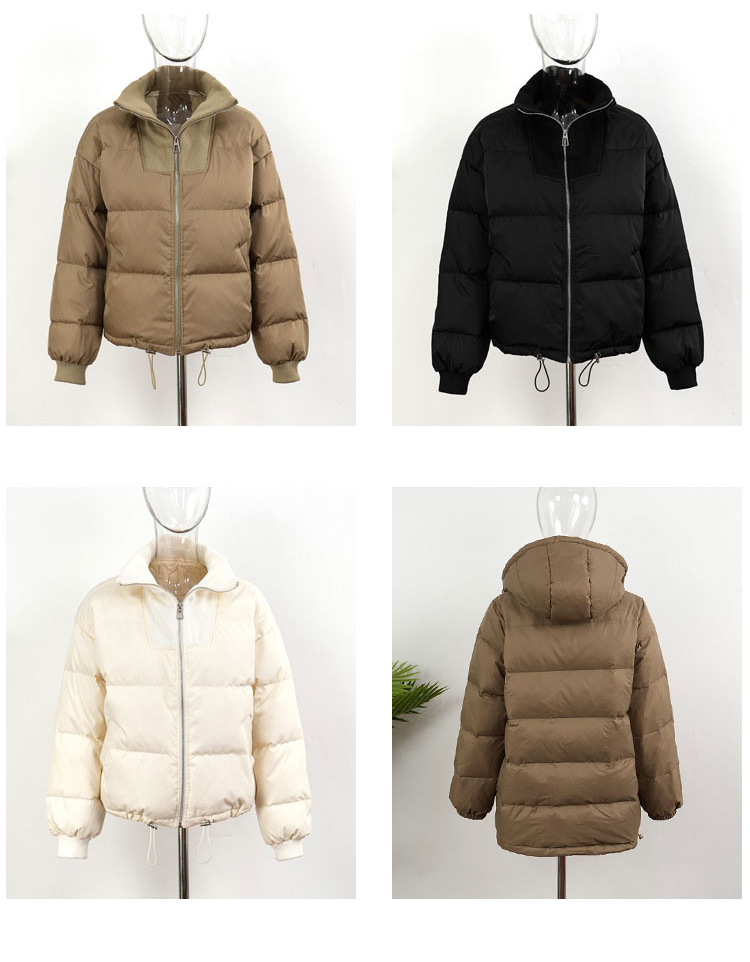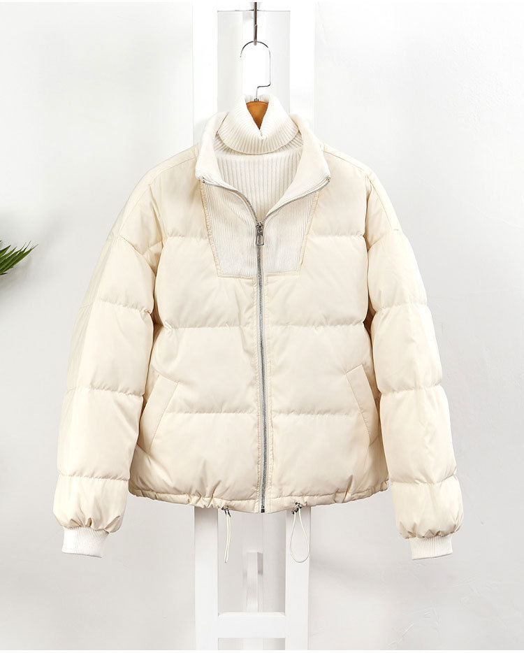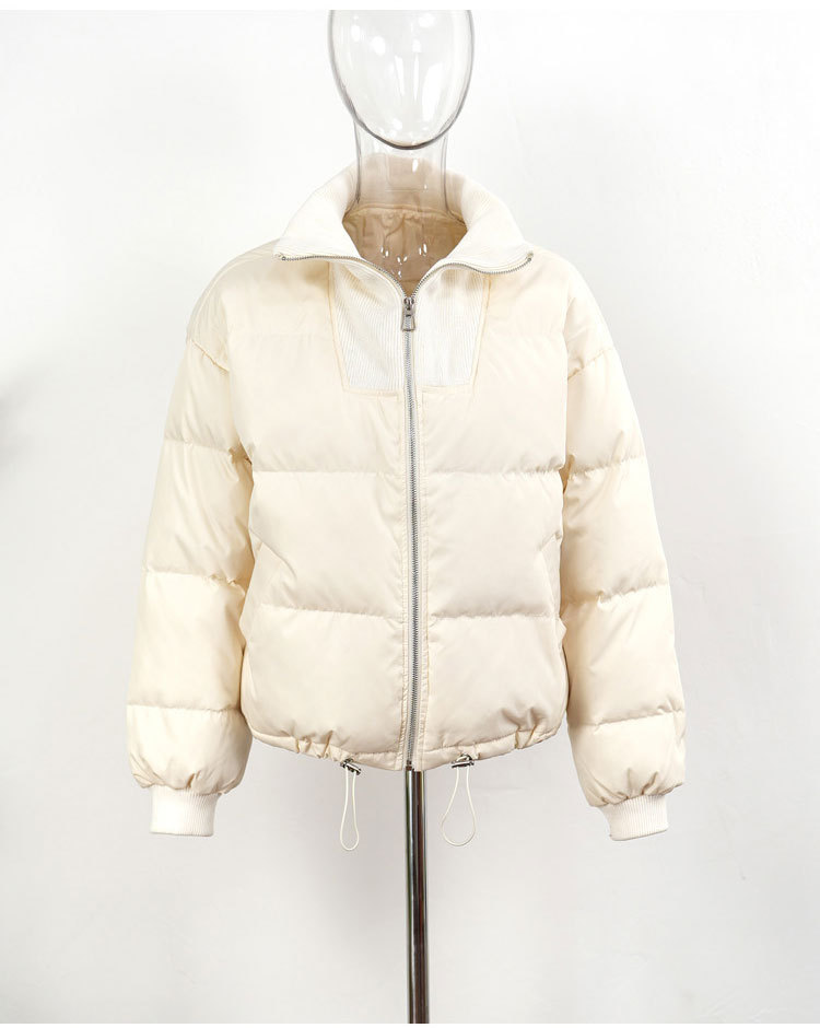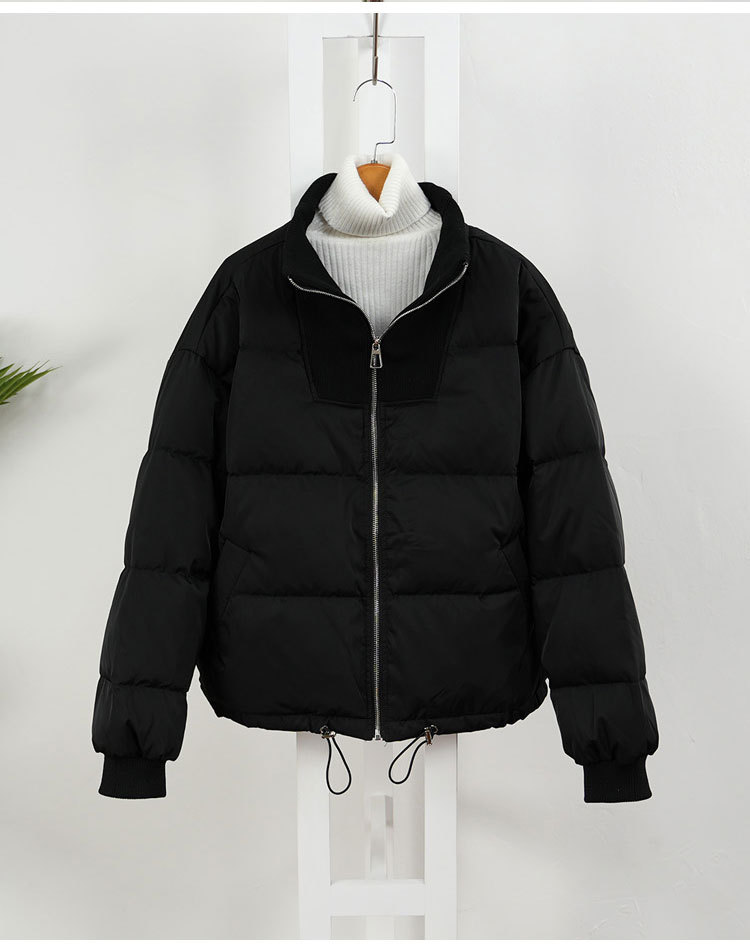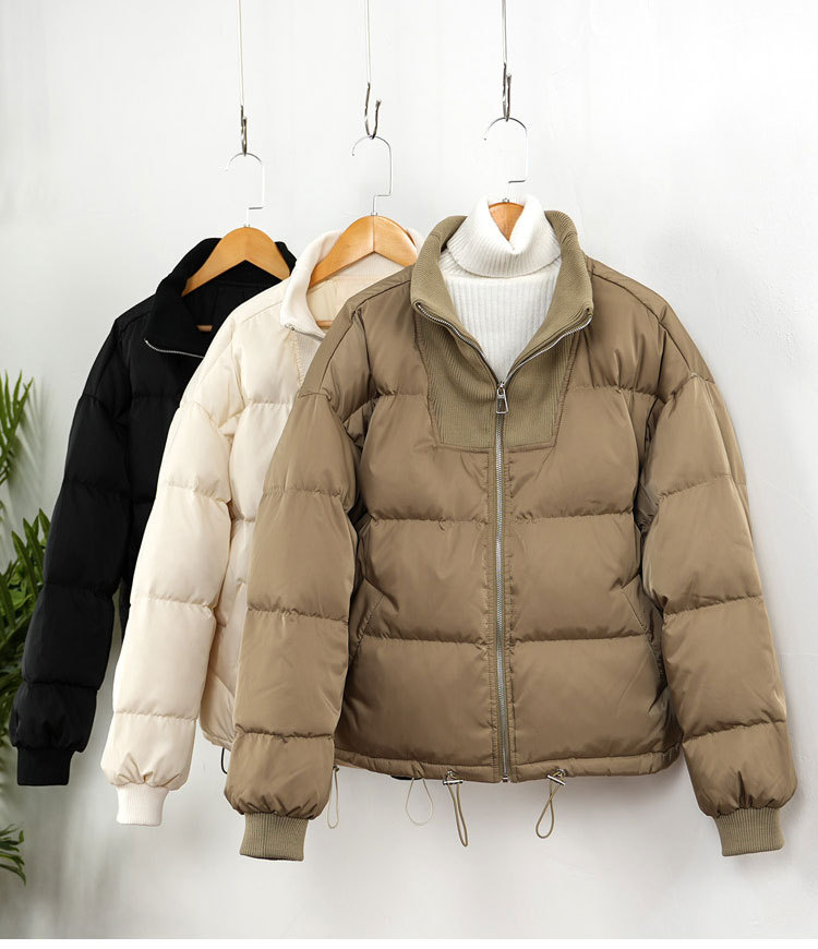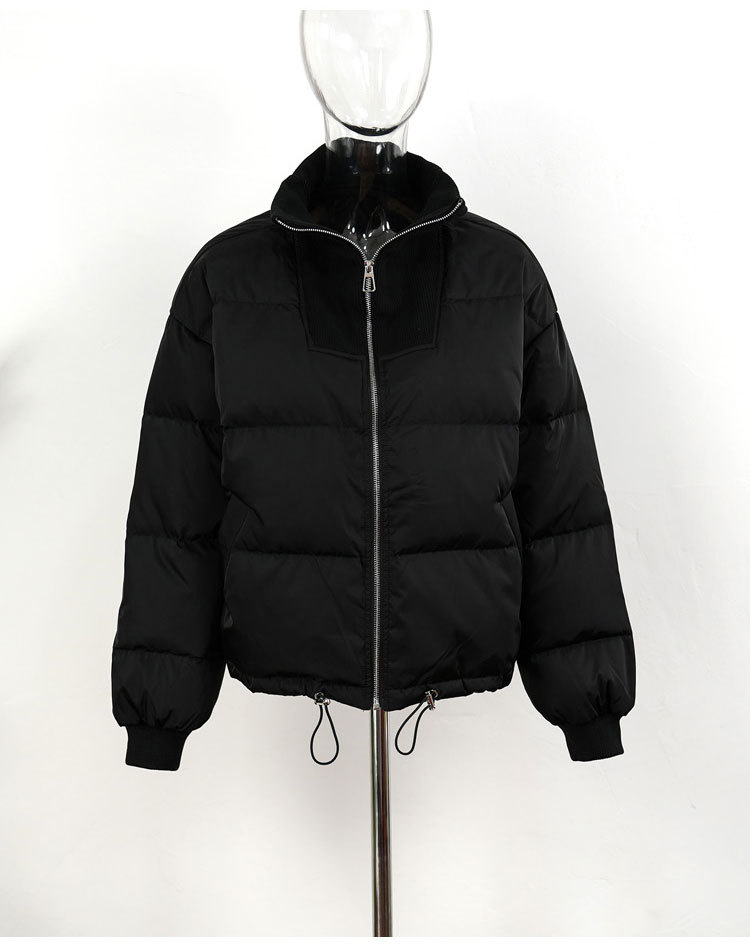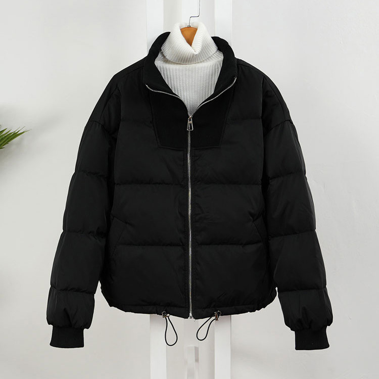 스티칭 다운 재킷 여성용 쇼트 스탠드 칼라 한국식 동대문 유행 느슨한 두꺼운 짧은 빵 코트 유행