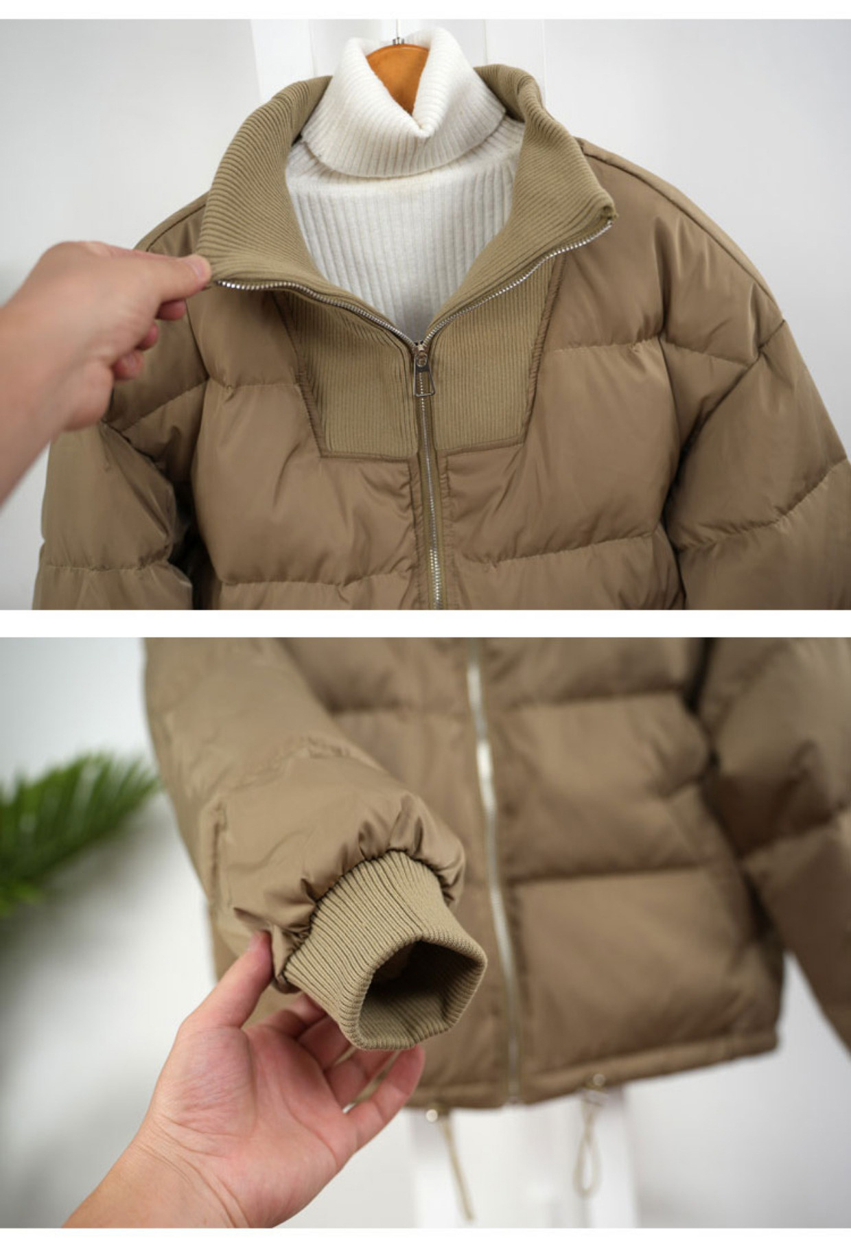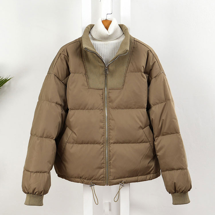 스티칭 다운 재킷 여성용 쇼트 스탠드 칼라 한국식 동대문 유행 느슨한 두꺼운 짧은 빵 코트 유행스토어 가기