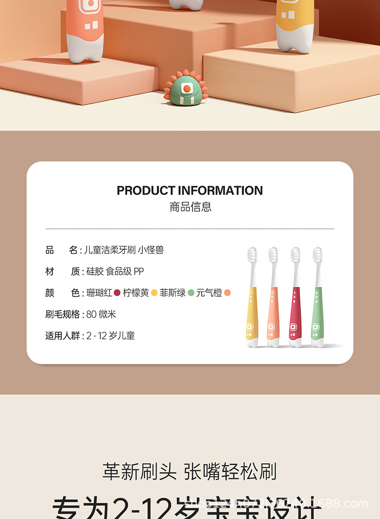 공장 직영 공장 도매 잉햄 어린이 부드러운 칫솔 2-6 세 6-12 세 어린이 칫솔