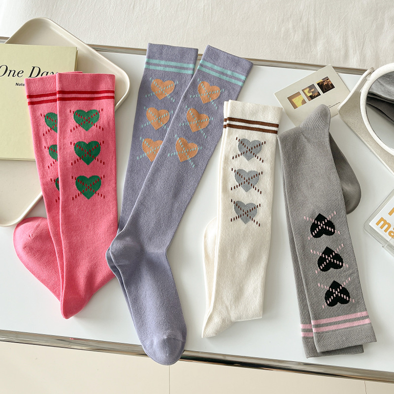 가을과 겨울 새로운 사랑 압력 송아지 양말 컬러 매칭 양말 JK 학업 스타일면 양말 여성용 뼈없는 양말스토어 가기
