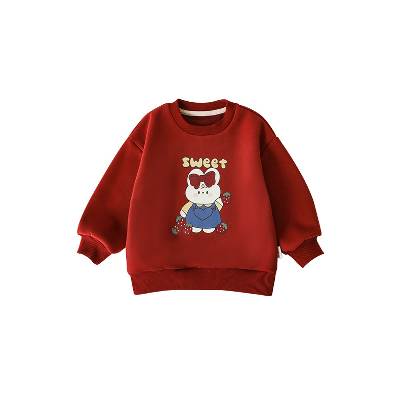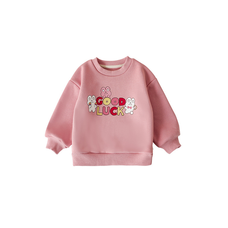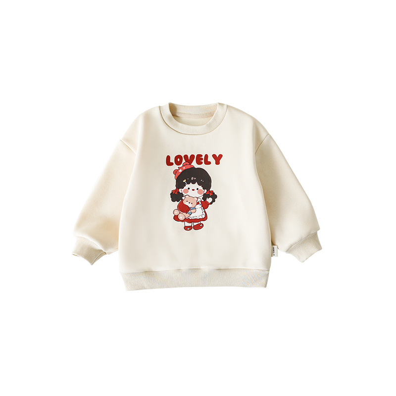Qiu Duomeng 어린이 만화 스웨트셔츠 소녀용 귀여운 플리스 상의 따뜻한 2025 봄 가을 신상 아기 옷 트렌디스토어 가기