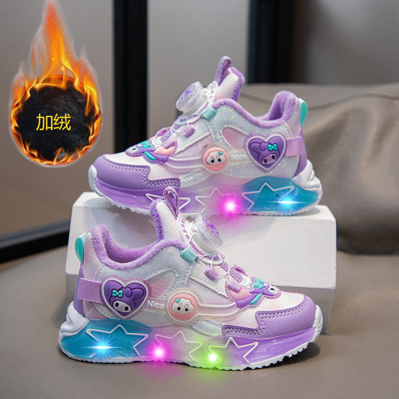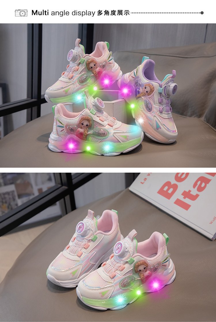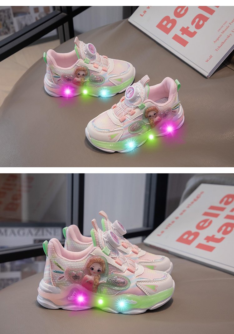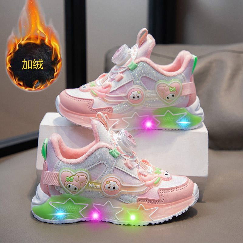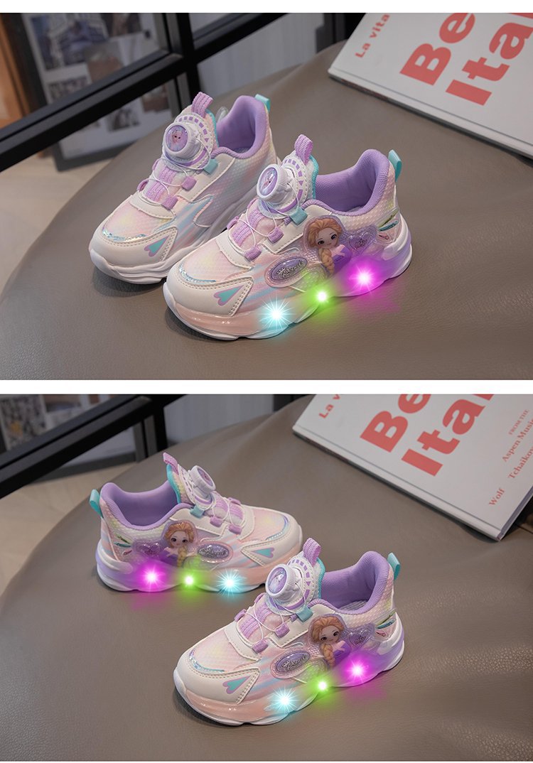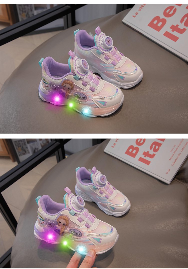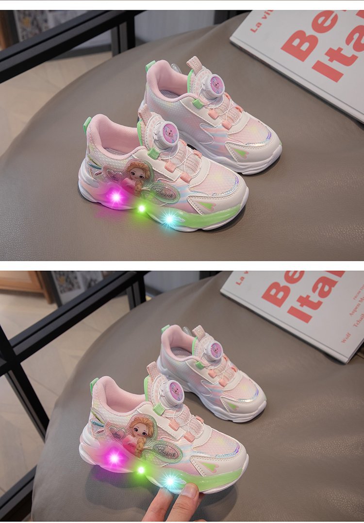 어린이용 라이트업 운동화 2025 가을 겨울 신상 회전 버튼 만화 발광 공주 신발 여아용 플러스 벨벳 보온스토어 가기
