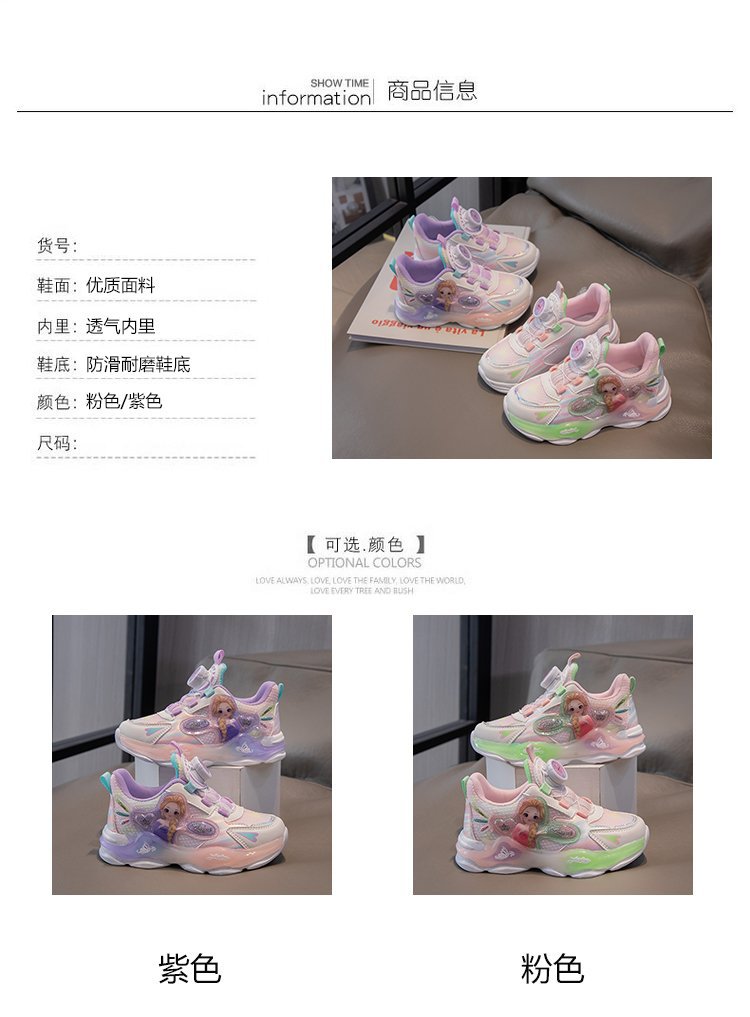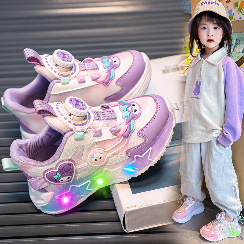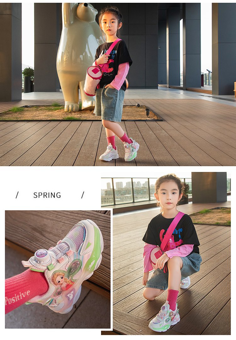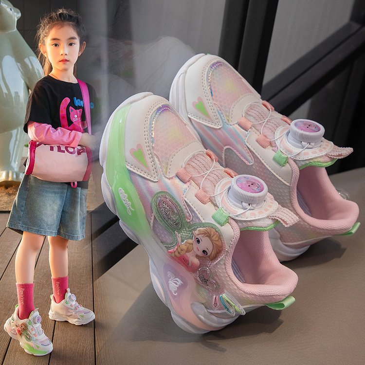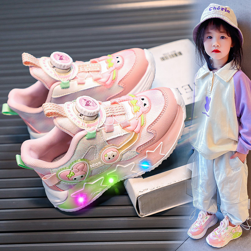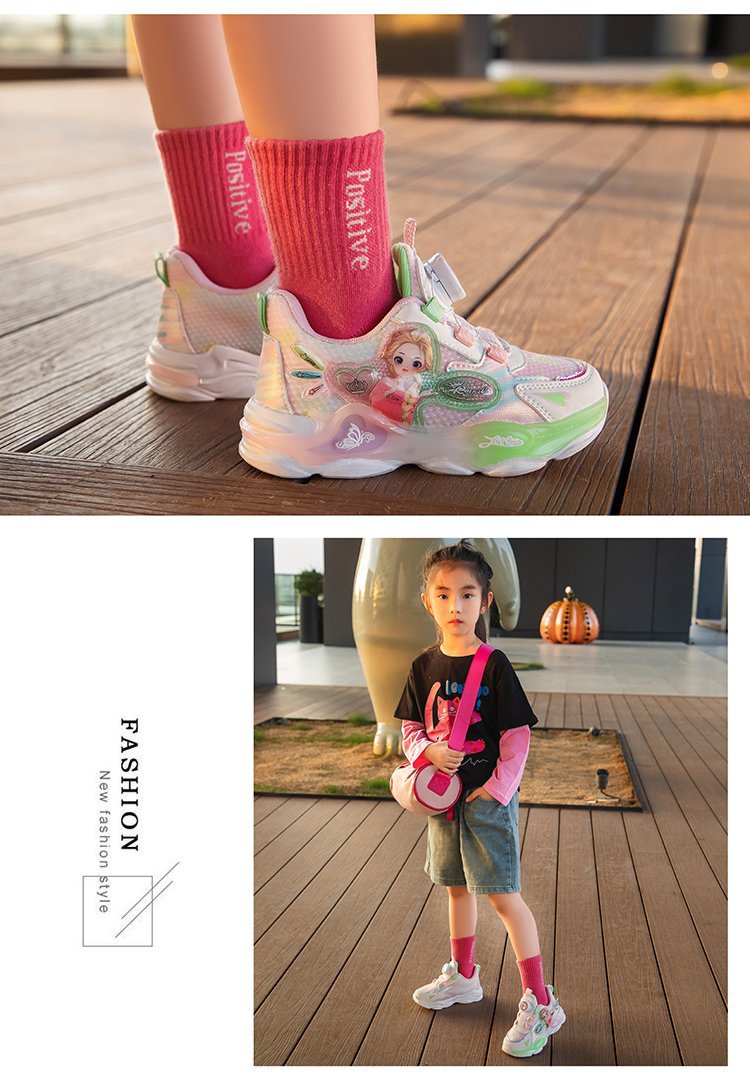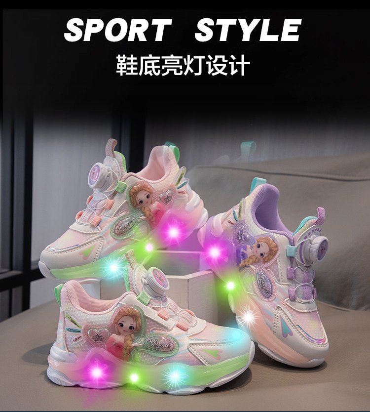 어린이용 라이트업 운동화 2025 가을 겨울 신상 회전 버튼 만화 발광 공주 신발 여아용 플러스 벨벳 보온스토어 가기