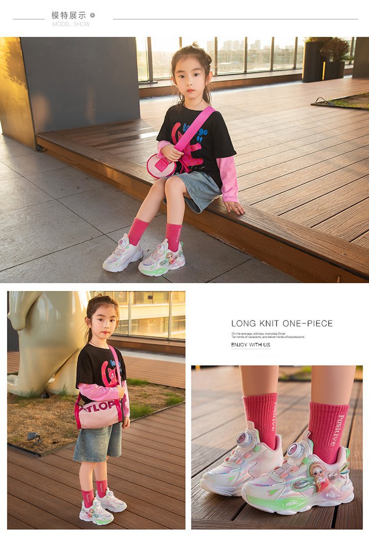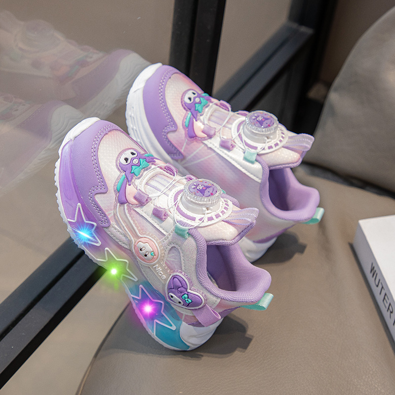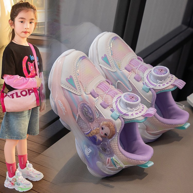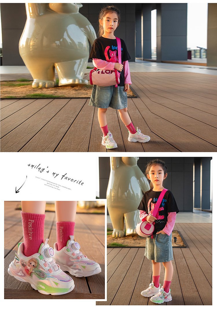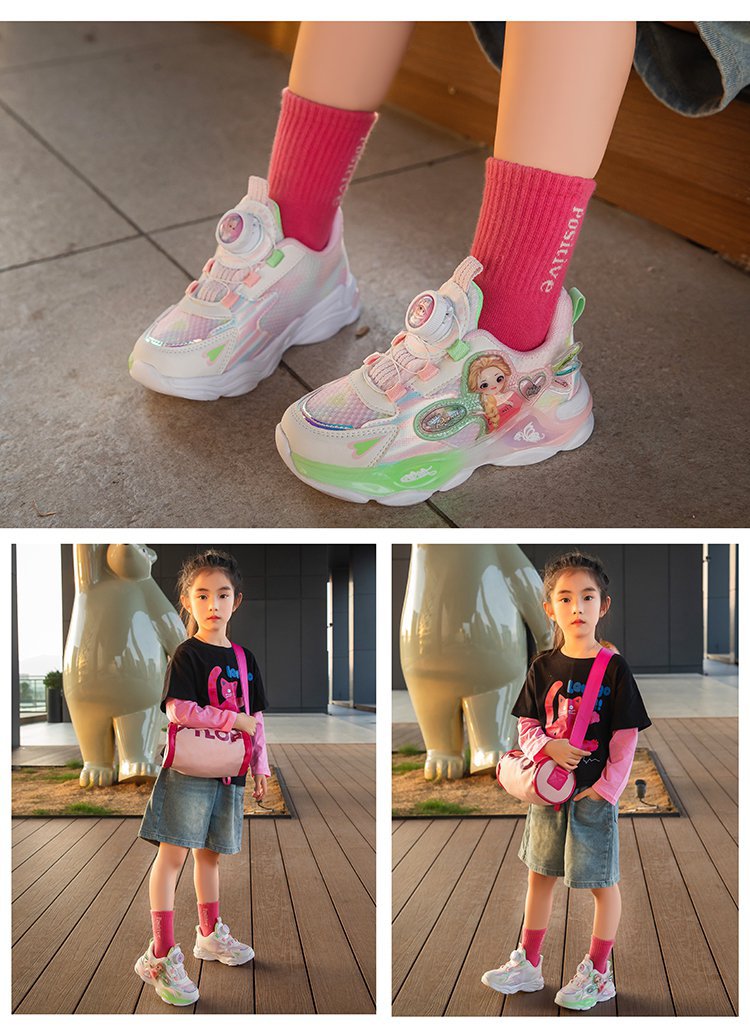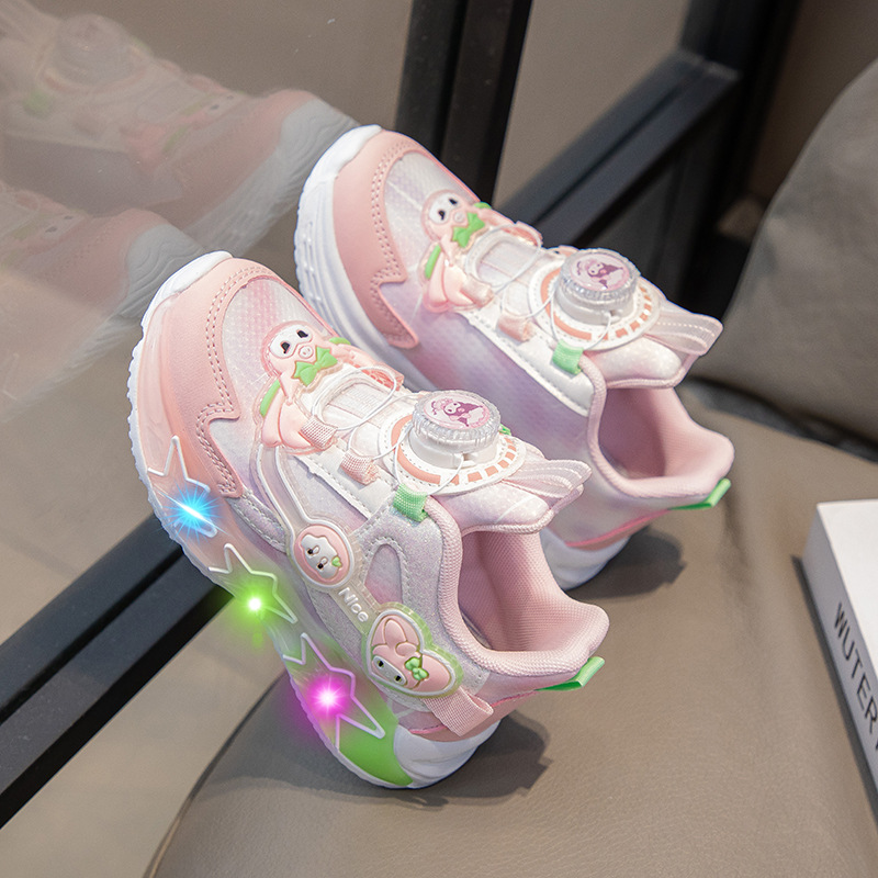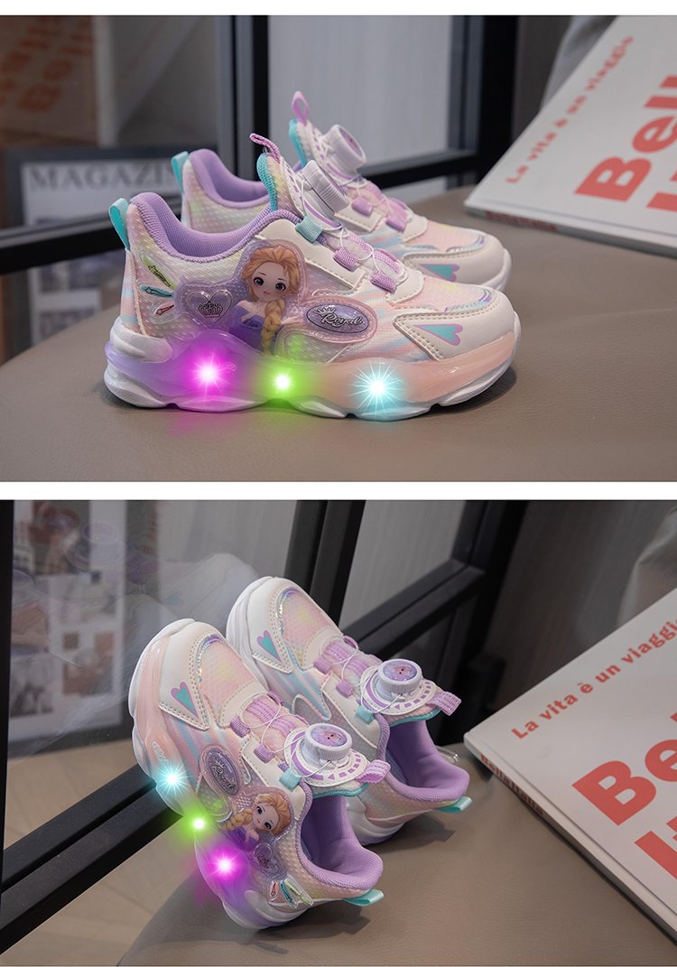 어린이용 라이트업 운동화 2025 가을 겨울 신상 회전 버튼 만화 발광 공주 신발 여아용 플러스 벨벳 보온