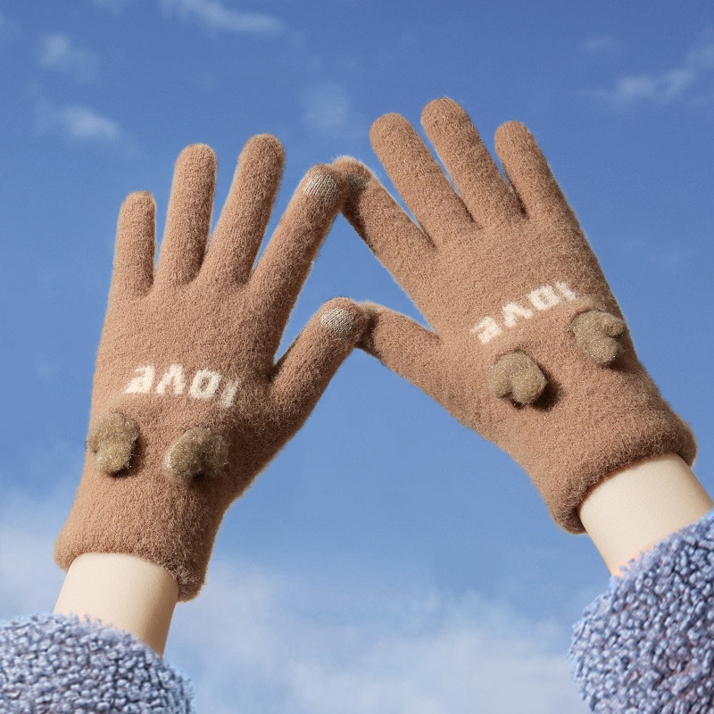 가을과 겨울에 따뜻하고 방한 기모 남성과 여성을위한 니트 터치 스크린 장갑 두꺼운 양모 학생의 손가락 니트 승마