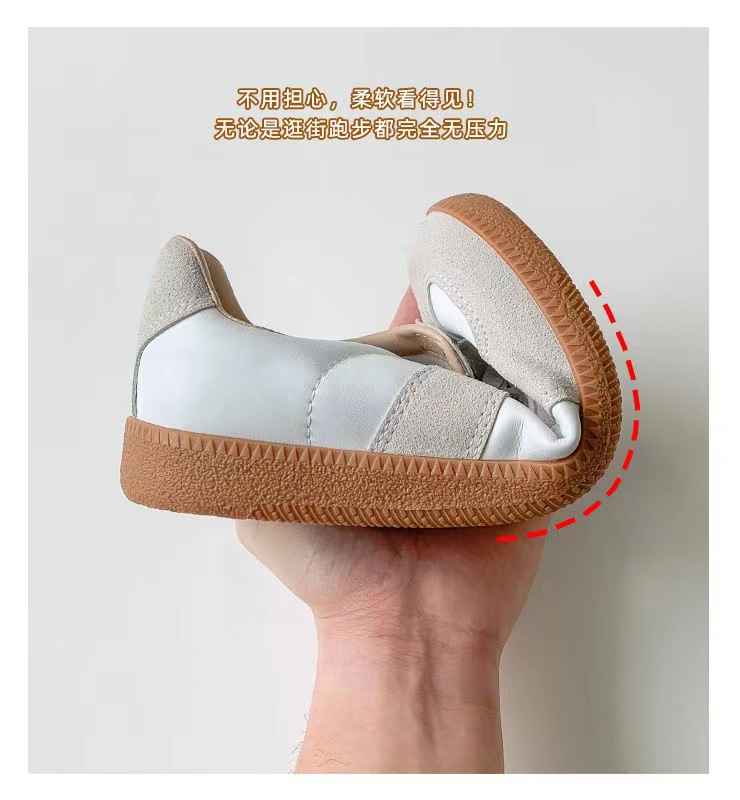독일 트레이닝 슈즈 2023 새로운 가죽 두꺼운 밑창 작은 흰색 신발 여성용 모든 매치 플랫 스포츠 캐주얼 보드 슈즈 트렌드스토어 가기