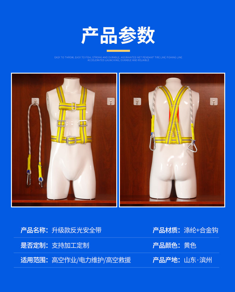 업그레이드 된 반사 안전 벨트 공중 작업 형광 표준 어깨 및 허리 보호 전신 5 점 안전 벨트스토어 가기