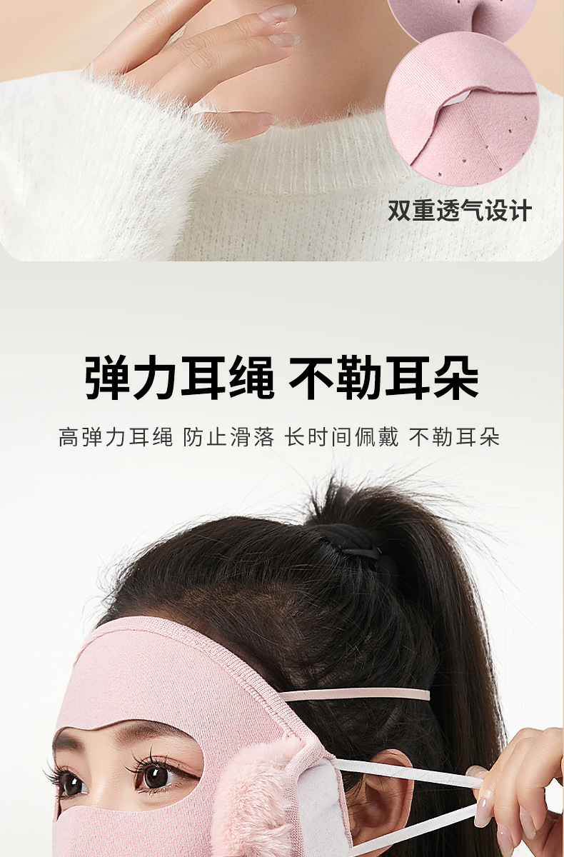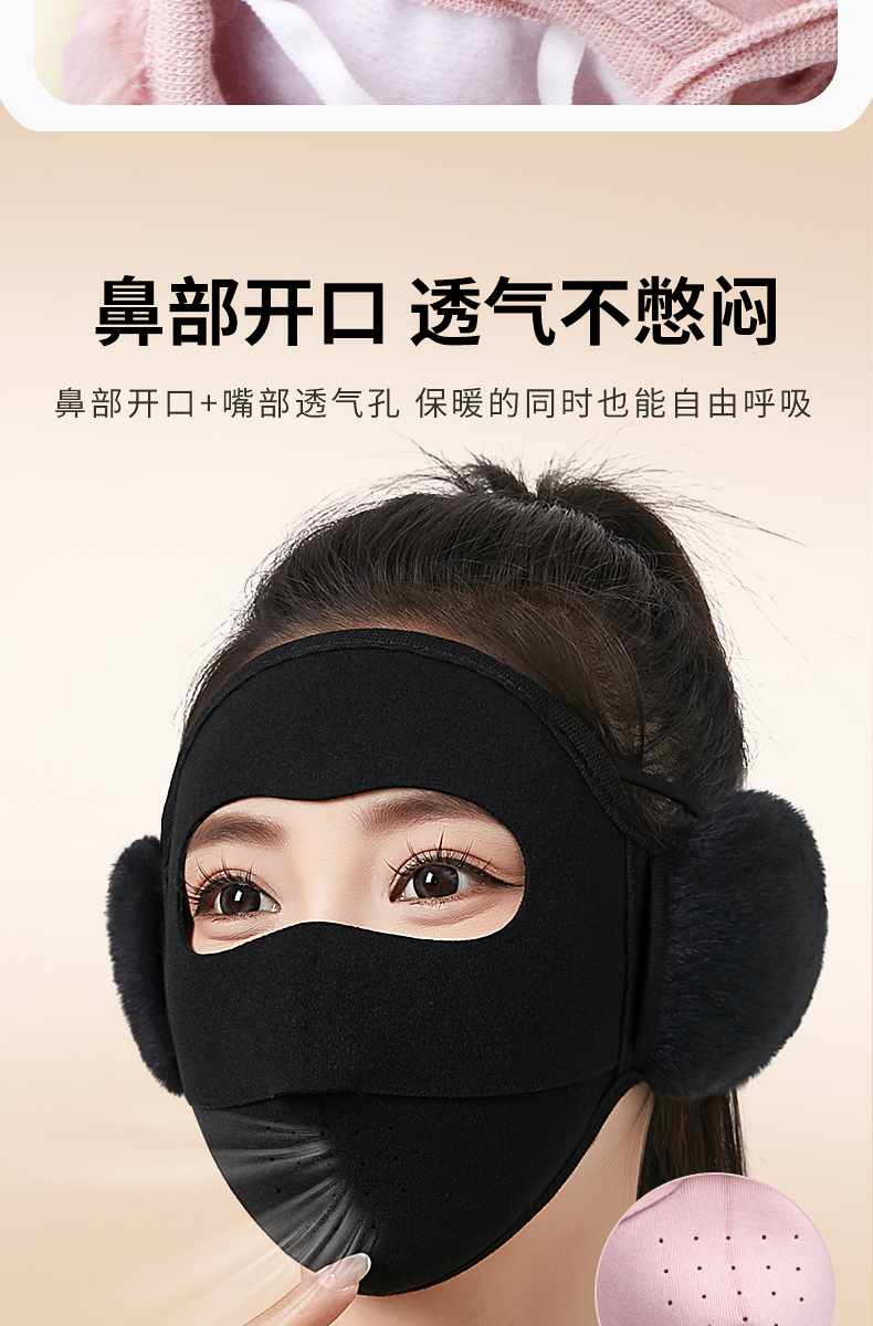 여성용 겨울 마스크, 코가 열려 있는 통기성 귀마개, 사이클링 방한용 풀페이스 보온 귀마개, 남성용 투인원 마스크