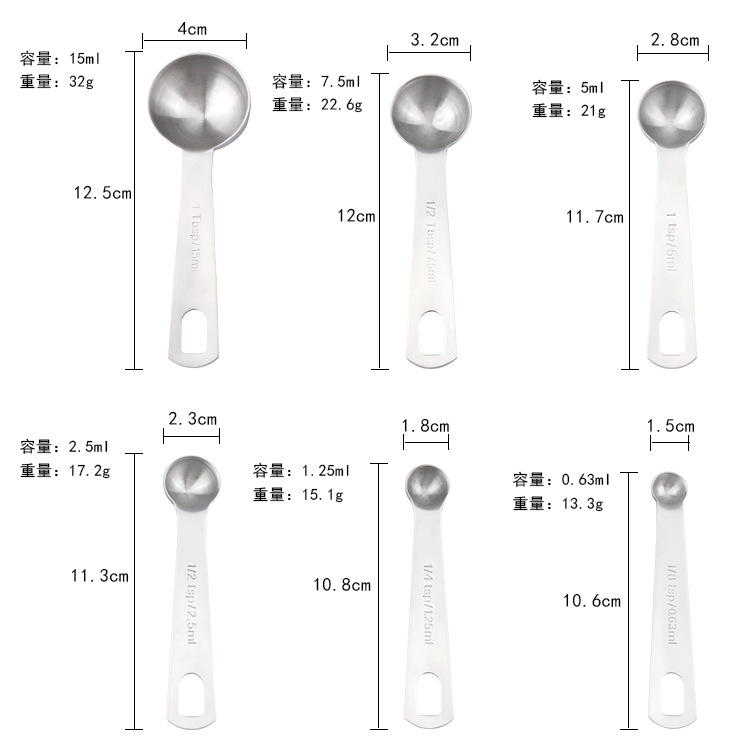 304 스테인레스 스틸 측정 스푼 라운드 측정 스푼 세트 가정용 베이킹 DIY 커피 스푼 측정 스푼 스케일 측정 스푼