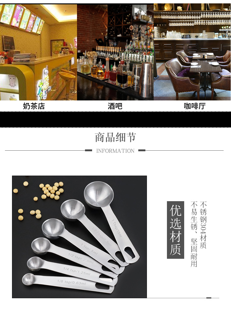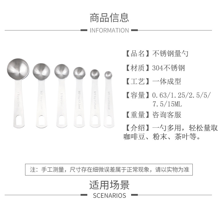 304 스테인레스 스틸 측정 스푼 라운드 측정 스푼 세트 가정용 베이킹 DIY 커피 스푼 측정 스푼 스케일 측정 스푼스토어 가기