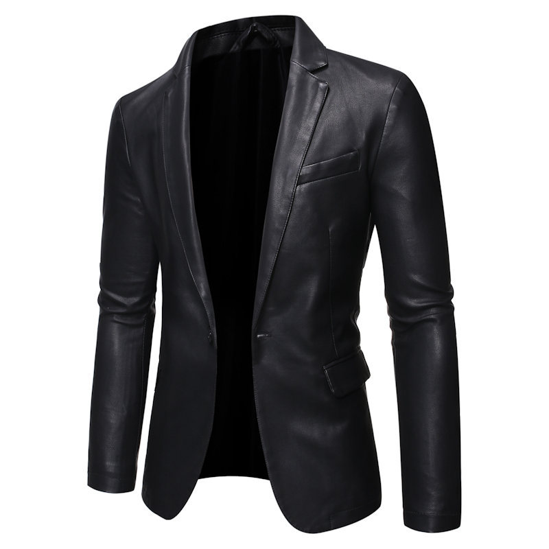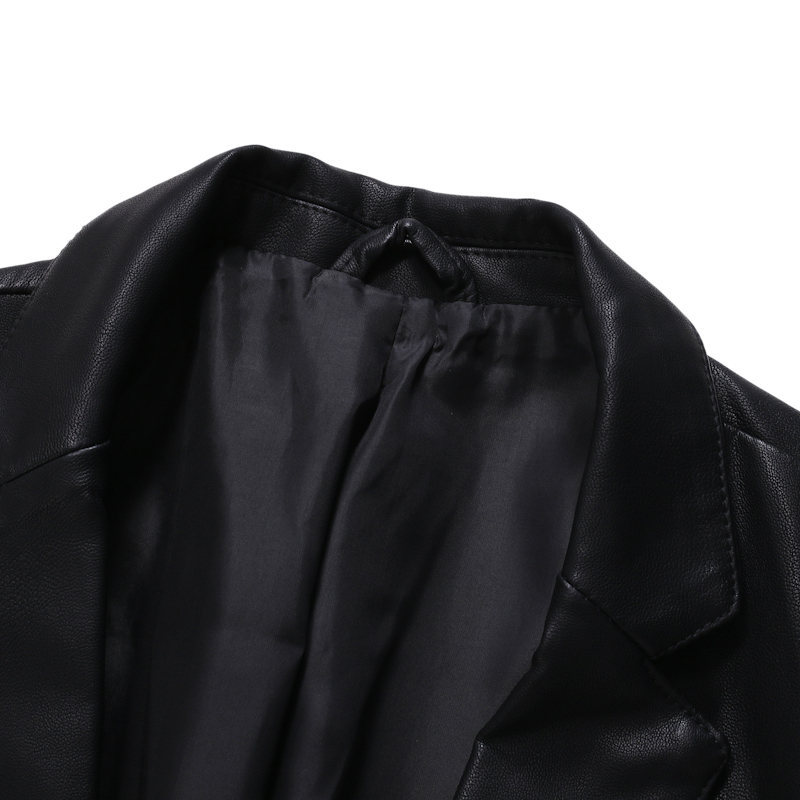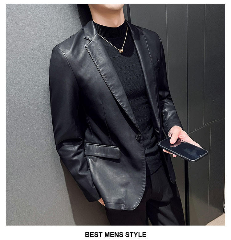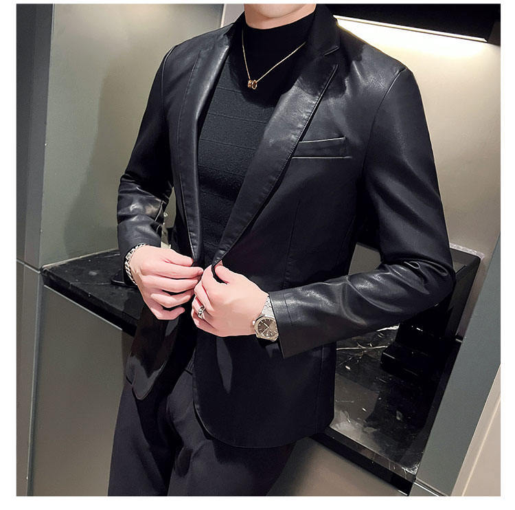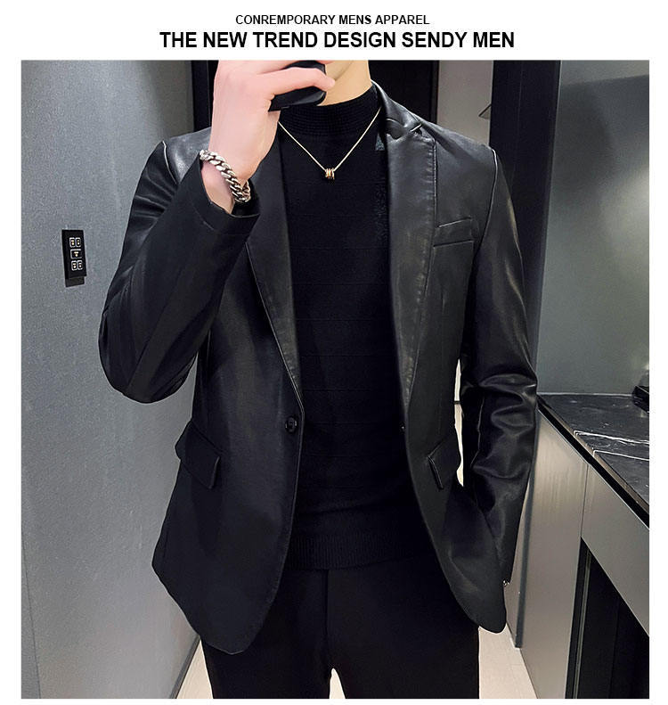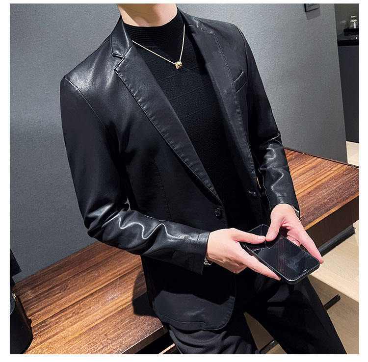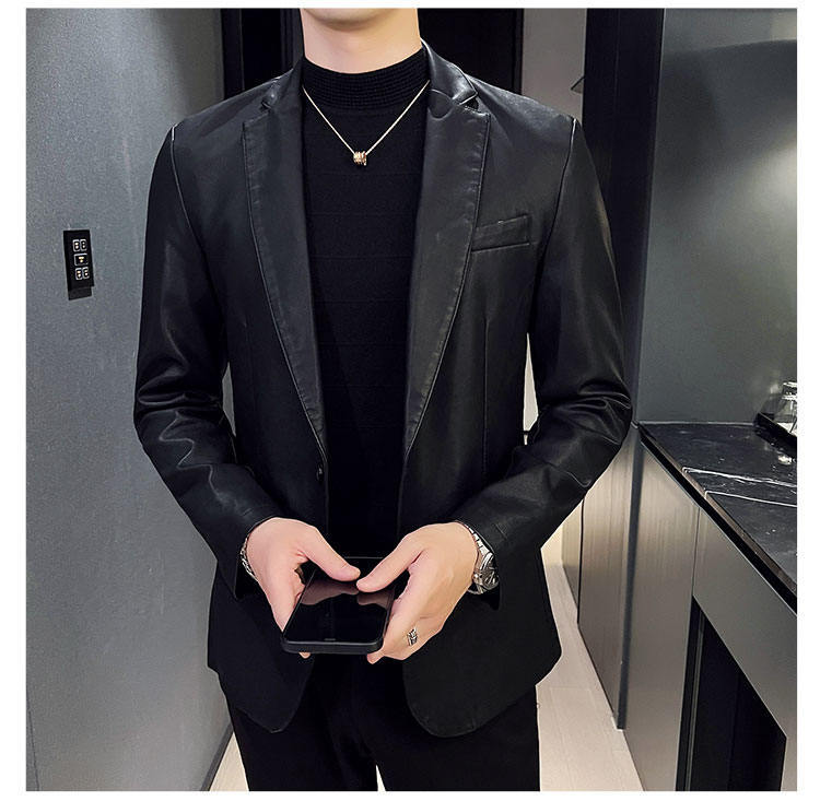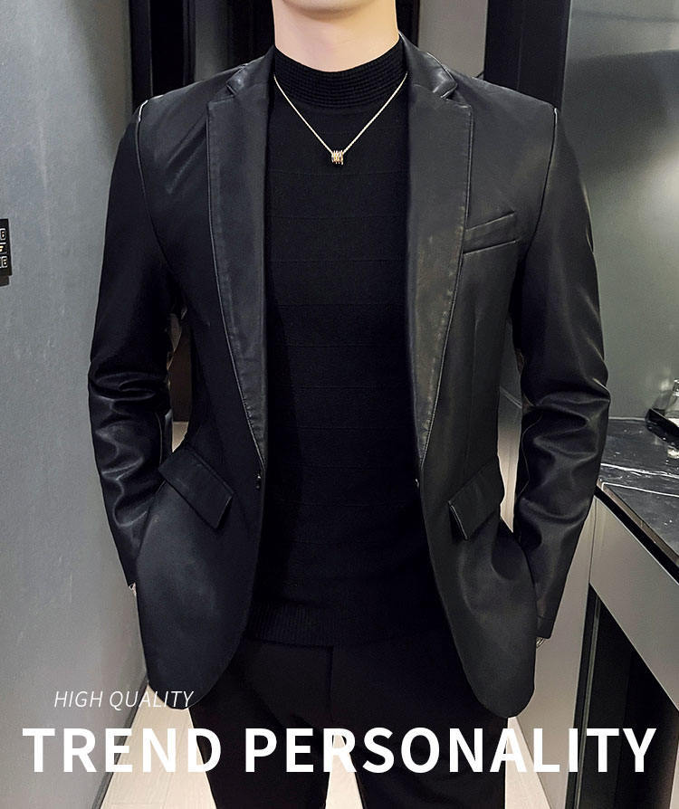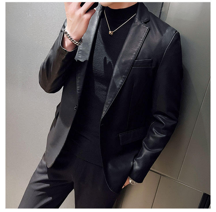 남자의 가죽 자켓 가을과 겨울 새로운 크로스 보더 오토바이 자켓 슬림 핏 한국 스타일 작은 세트 남자의 PU 가죽 자켓 세트