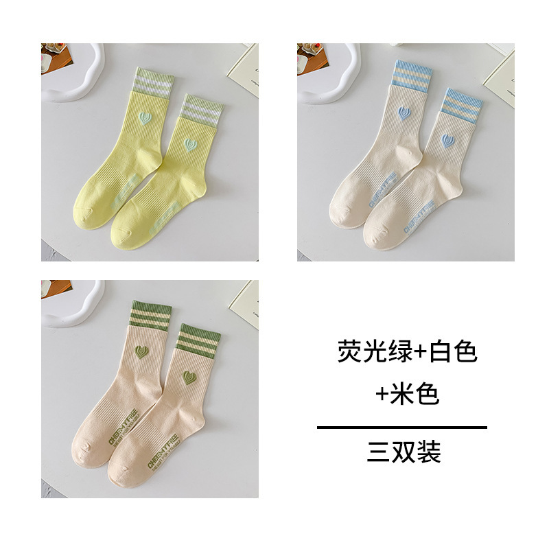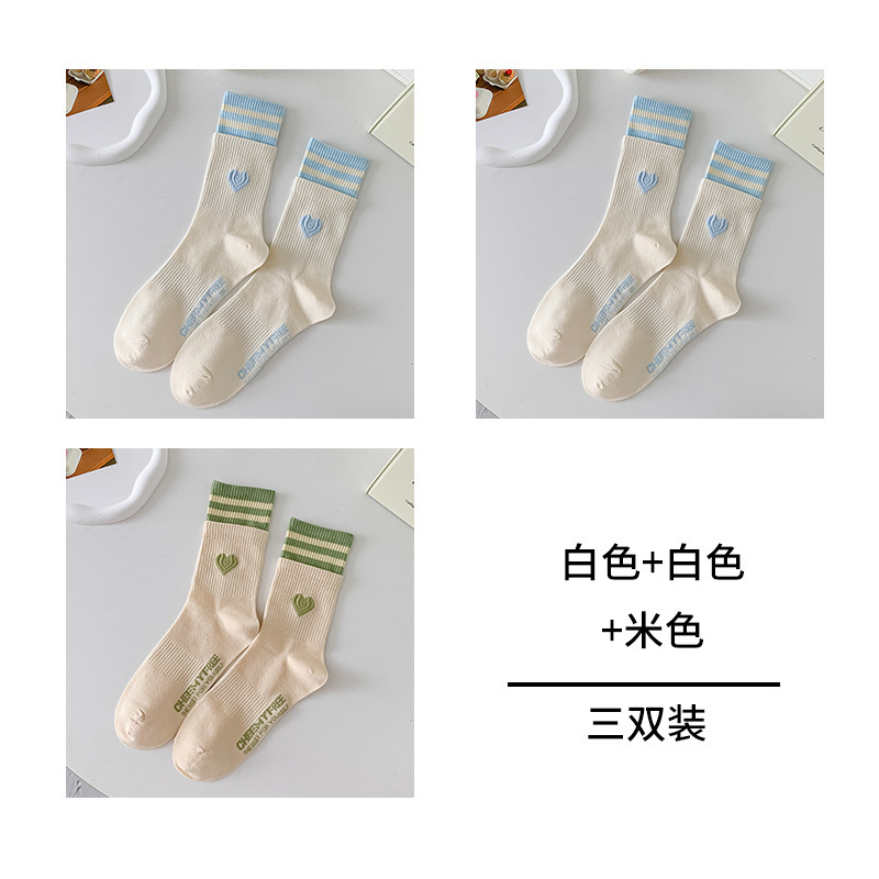 양말 여성용 미드 튜브 양말 스트라이프 양말 아카데믹 스타일 스택 스티칭 양말 긴 튜브 Zhuji 양말 하이탑