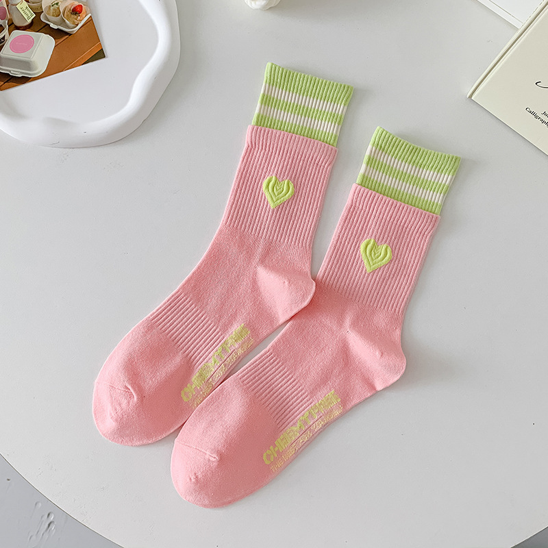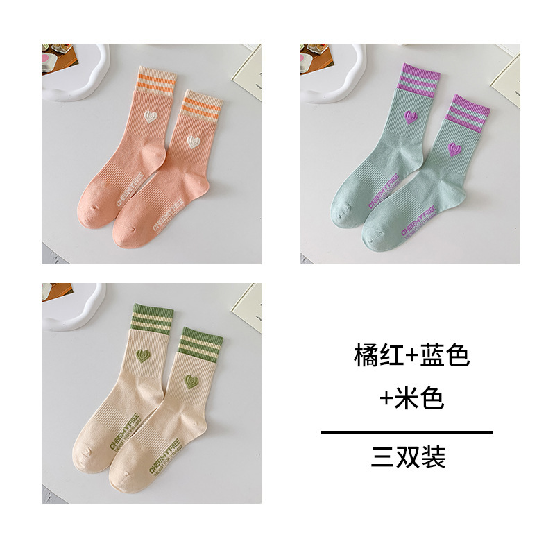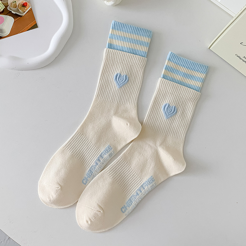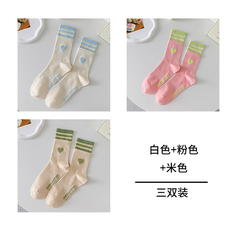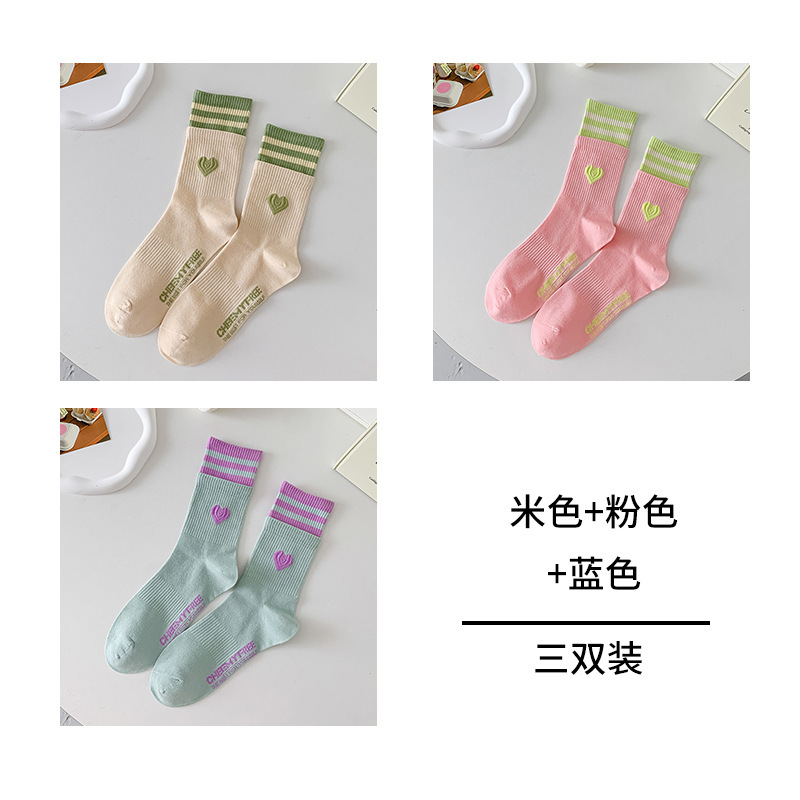 양말 여성용 미드 튜브 양말 스트라이프 양말 아카데믹 스타일 스택 스티칭 양말 긴 튜브 Zhuji 양말 하이탑스토어 가기