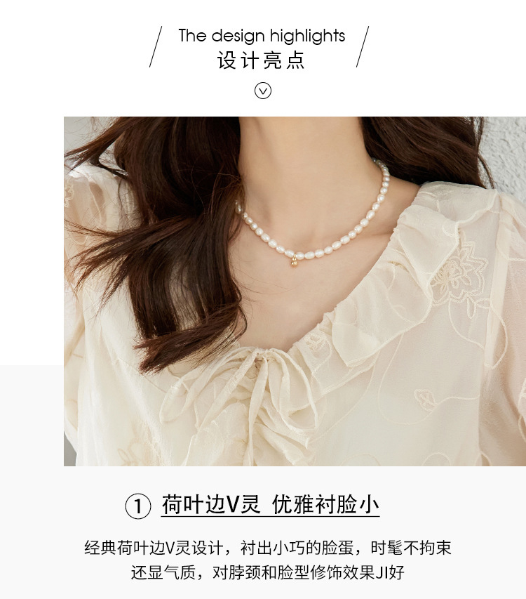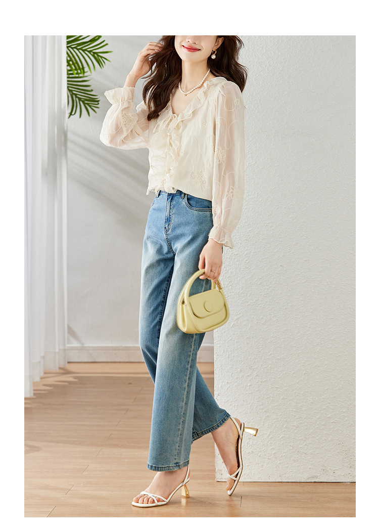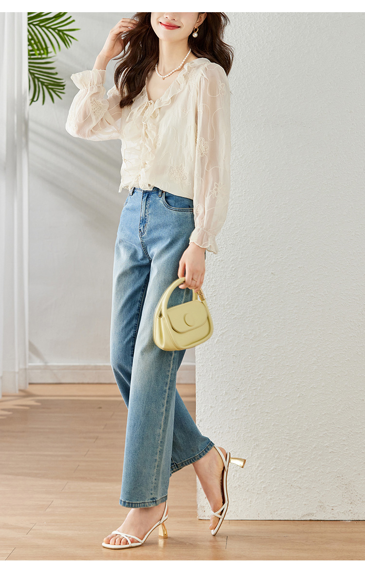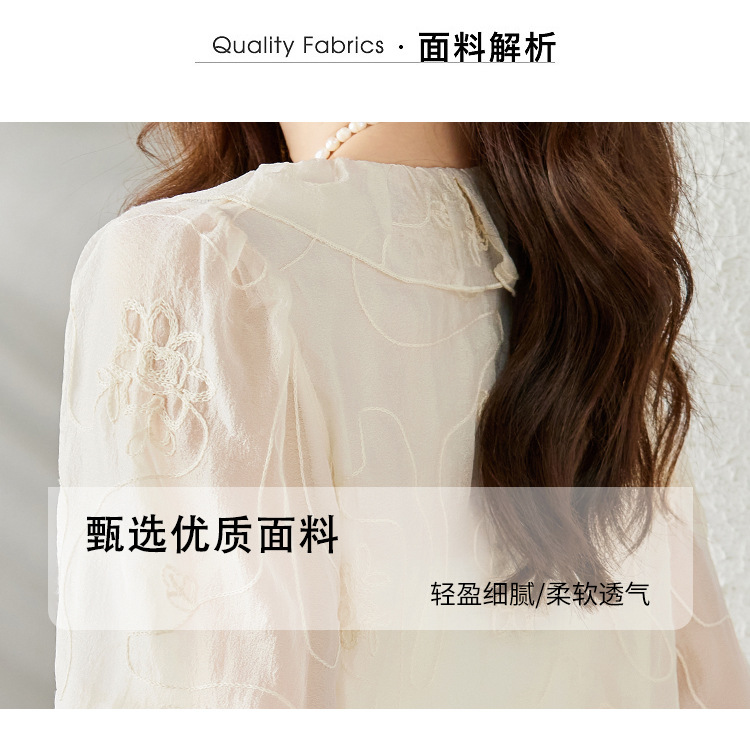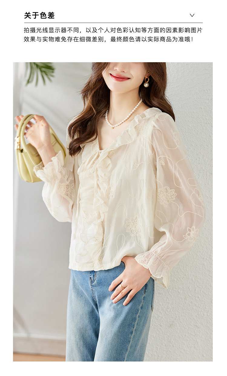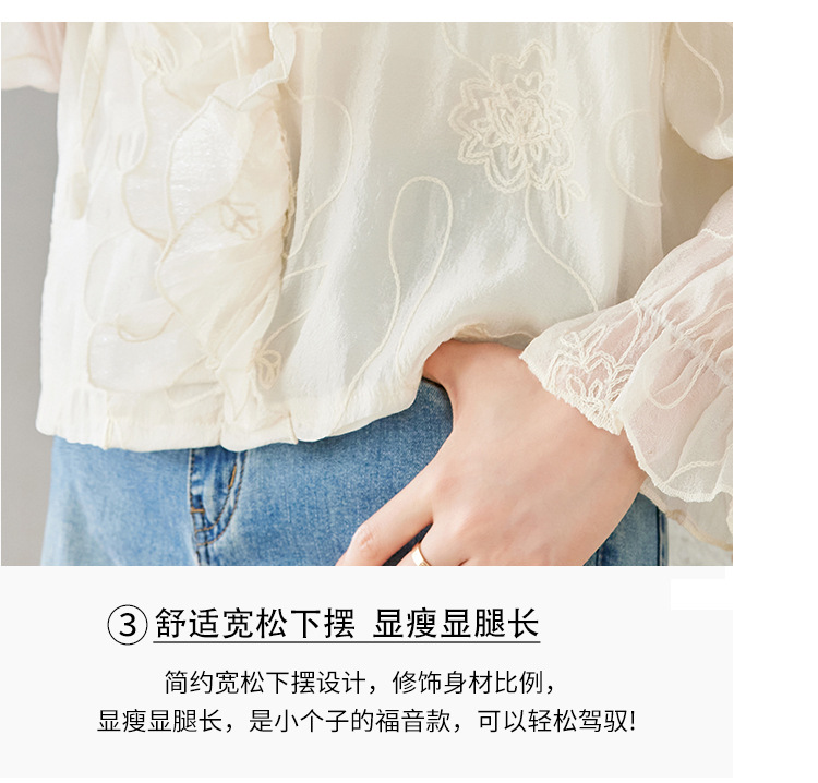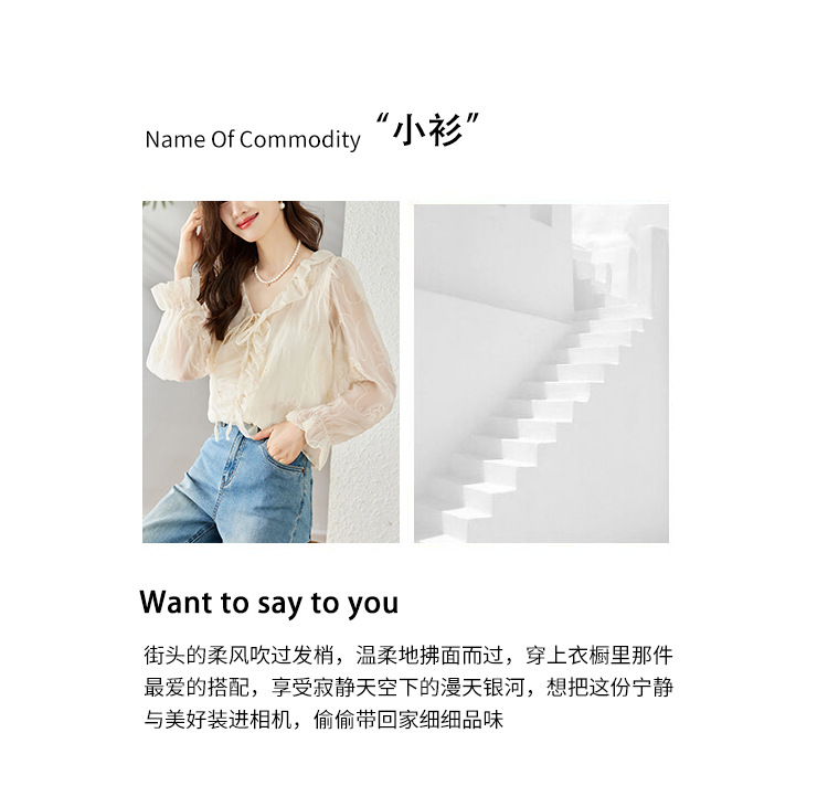 진짜 샷 2023 가을 새로운 한국 셔츠 달콤한 긴 소매 쉬폰 수 놓은 주름 셔츠 디자인 감각스토어 가기