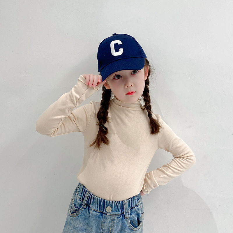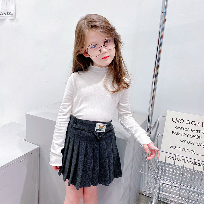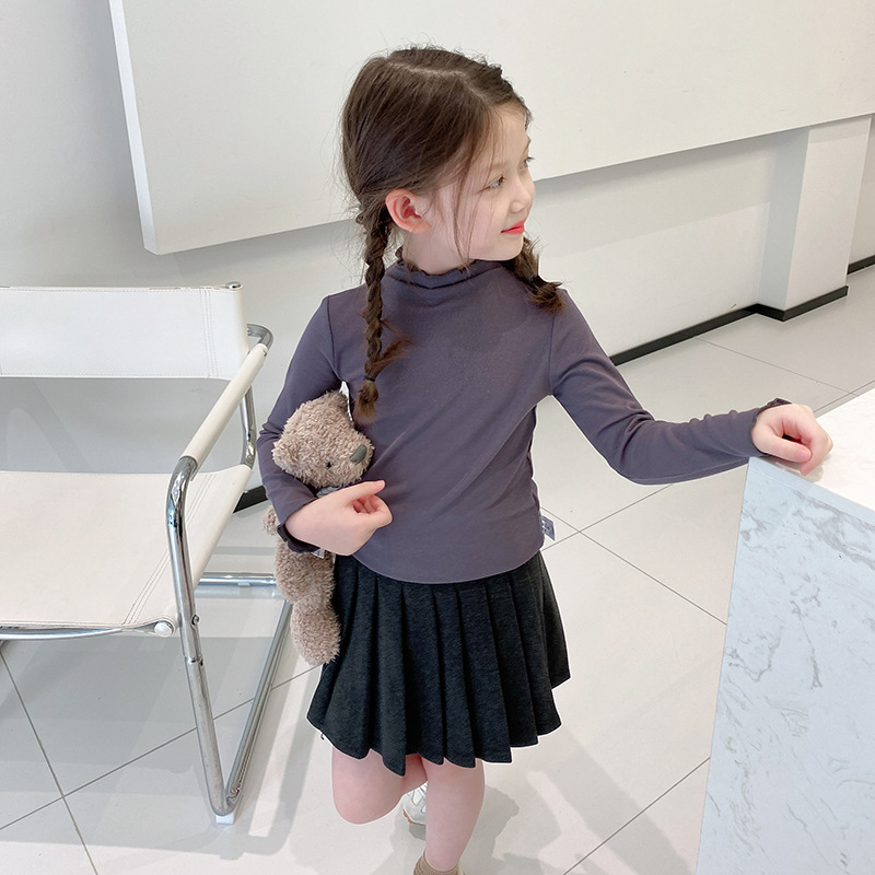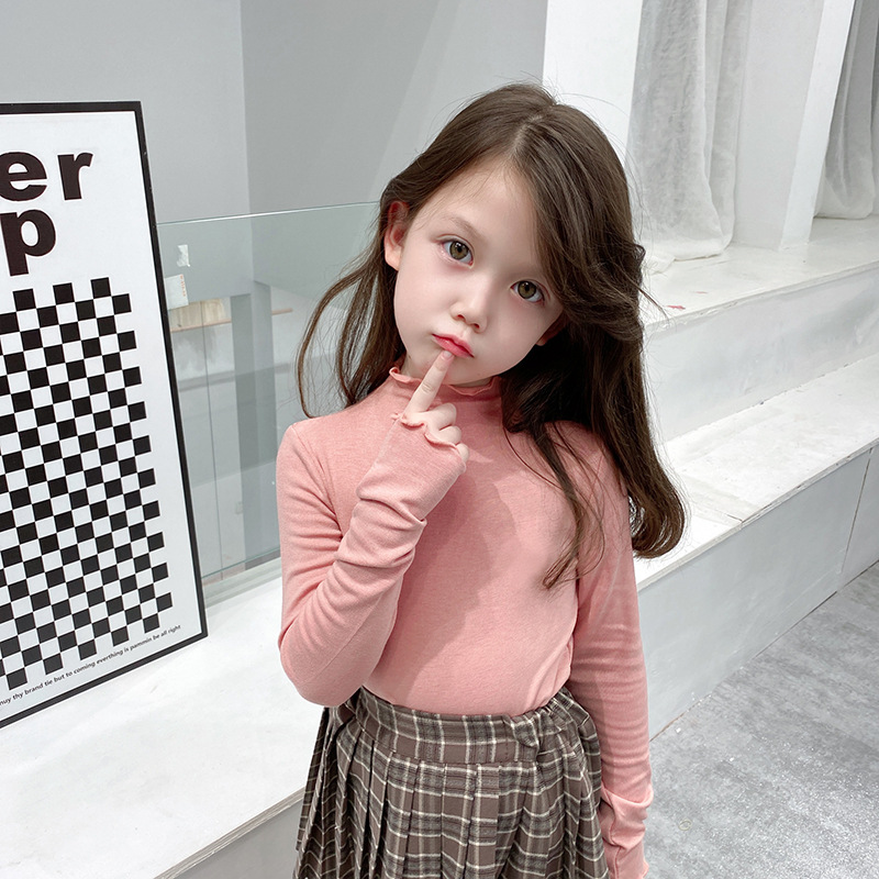 Y 여아용 이너웨어 한국 스타일 레이스 단색 긴팔 여아용 두꺼운 가을 겨울 신상 아동용 보온 상의