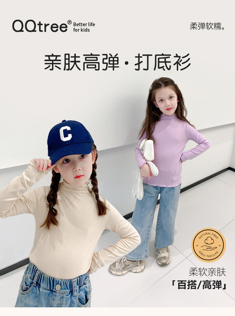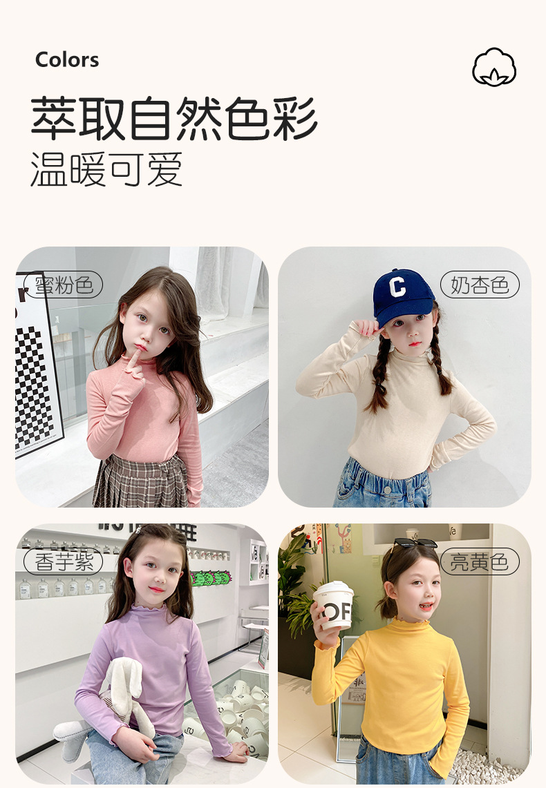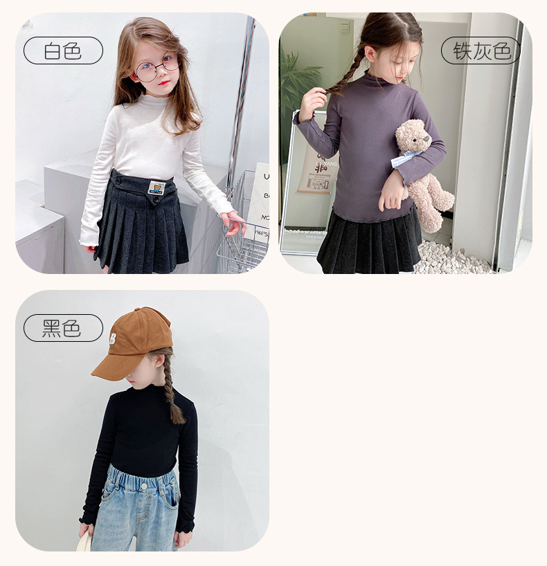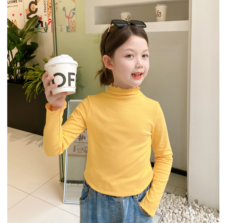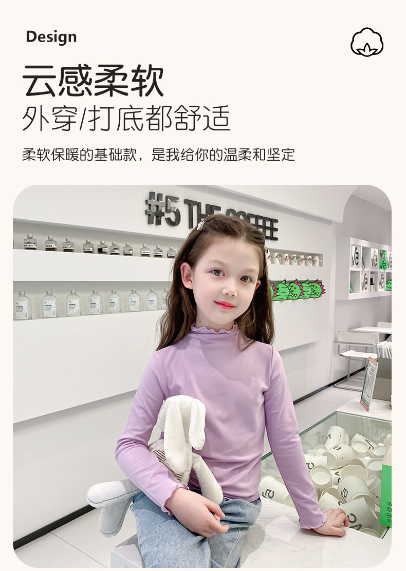Y 여아용 이너웨어 한국 스타일 레이스 단색 긴팔 여아용 두꺼운 가을 겨울 신상 아동용 보온 상의스토어 가기