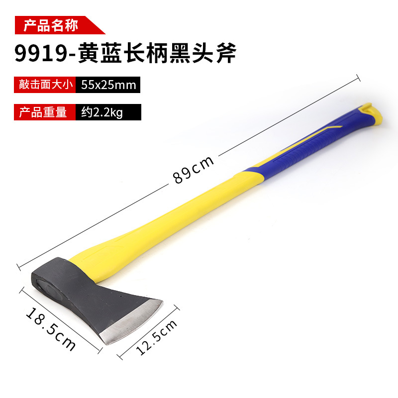 • 9919-노란색과 파란색의 긴 손잡이 블랙헤드 도끼
