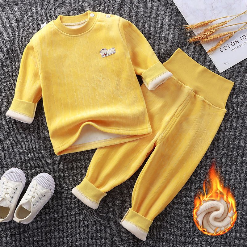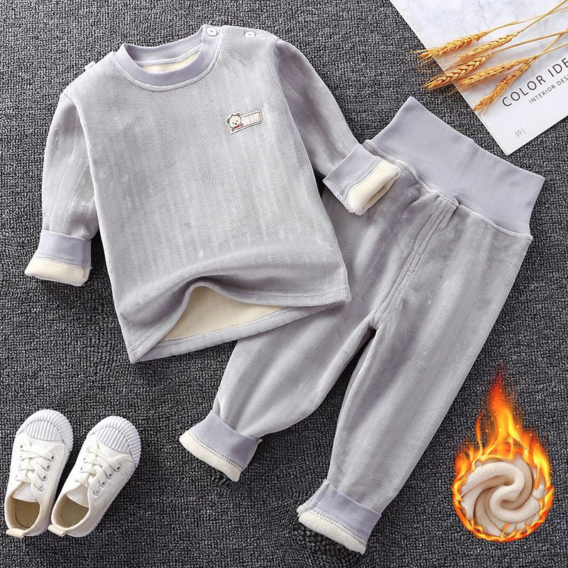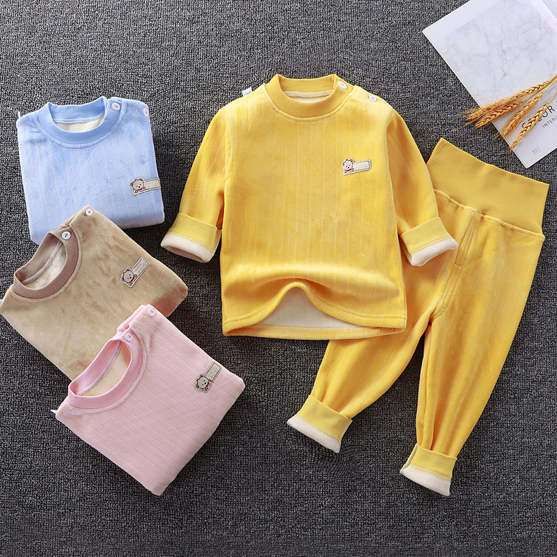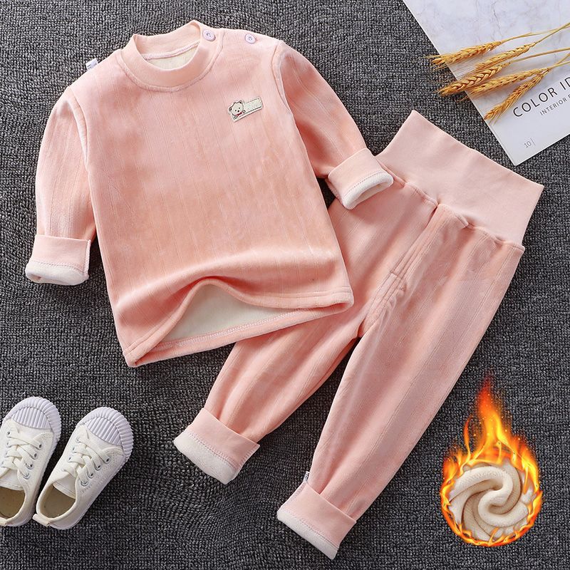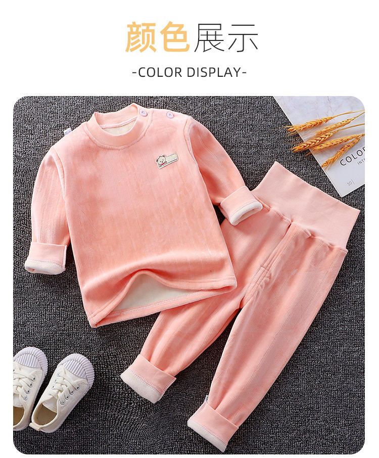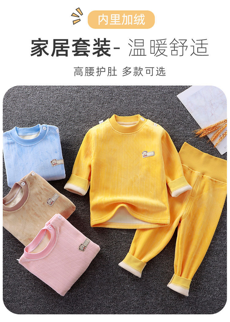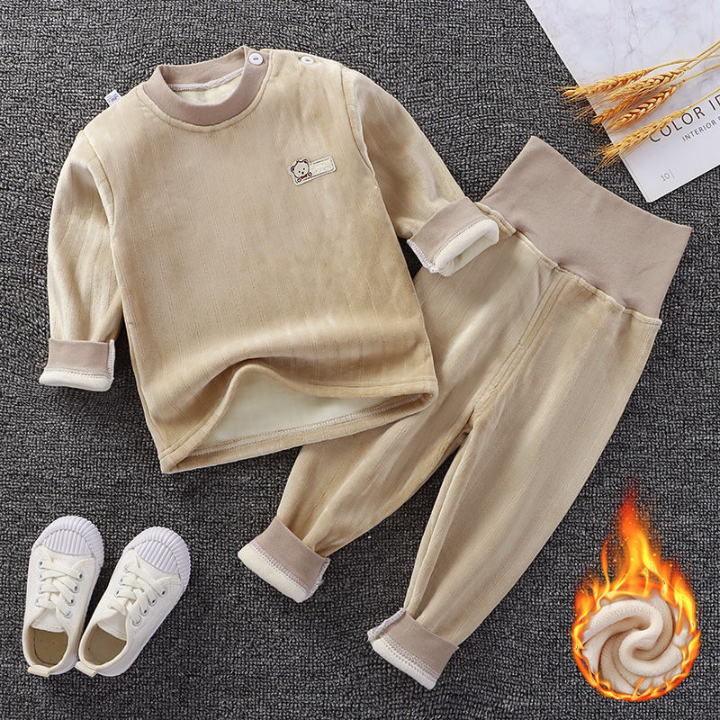 어린이 가을과 겨울 기모 속옷 세트 아기 하이 웨이스트 따뜻한 옷 아기 두꺼운 가을 옷 소년과 소녀를위한 가을 바지 잠옷스토어 가기