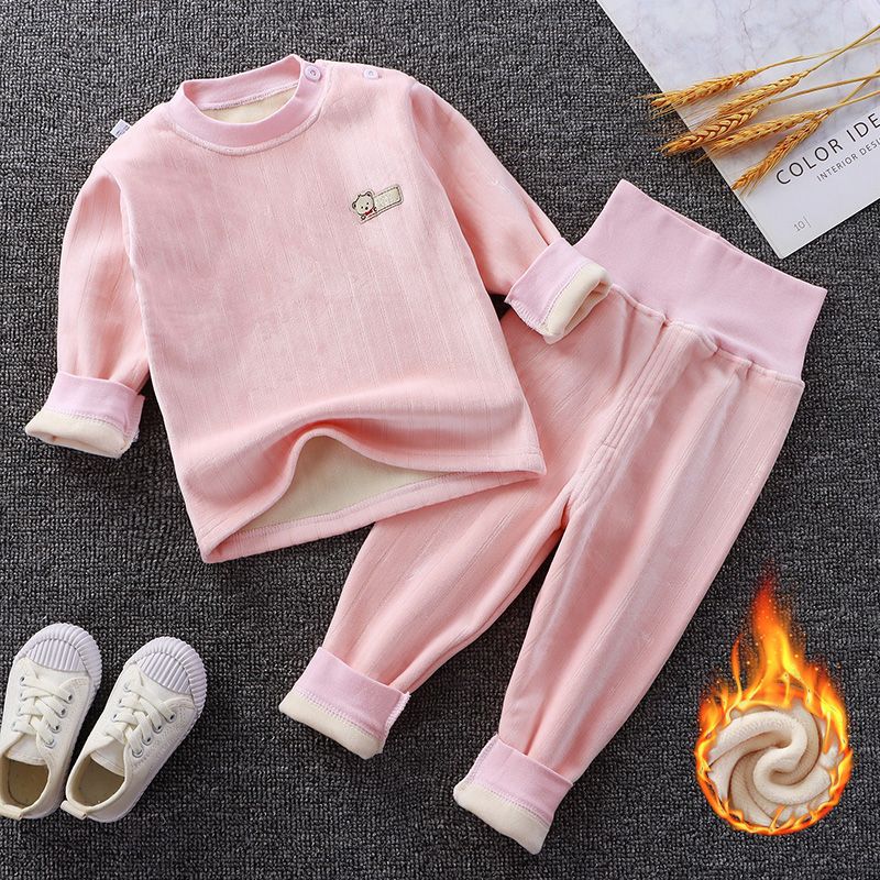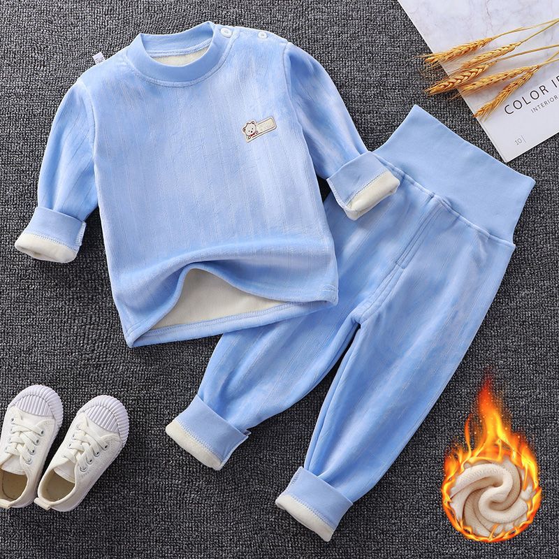 어린이 가을과 겨울 기모 속옷 세트 아기 하이 웨이스트 따뜻한 옷 아기 두꺼운 가을 옷 소년과 소녀를위한 가을 바지 잠옷