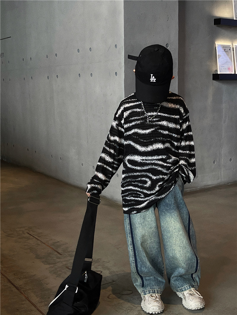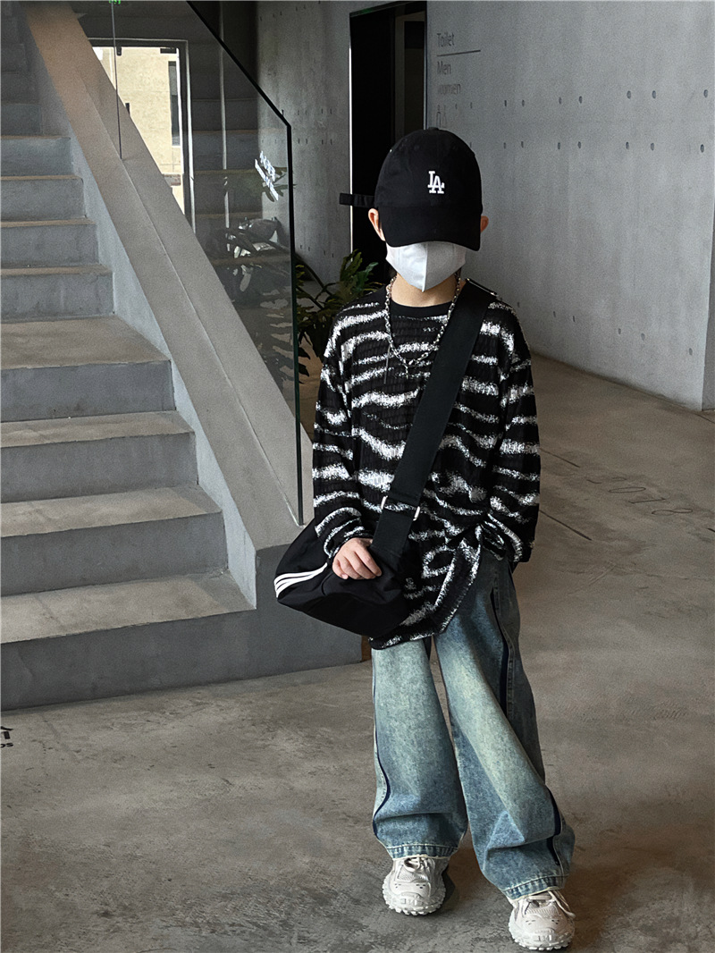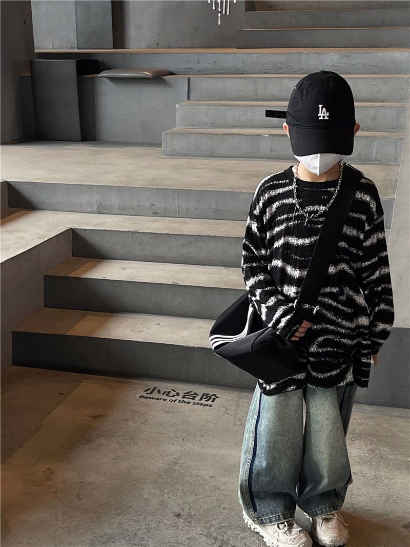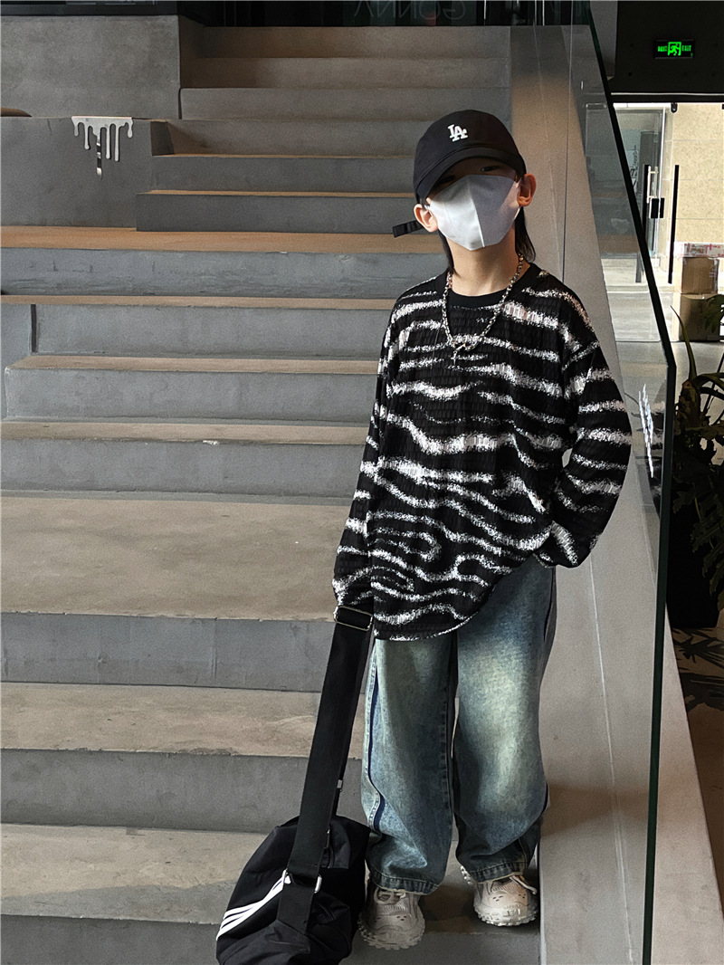 Baoduo 아동복 소년 가을 줄무늬 긴 소매 티셔츠 2023 새로운 옷 아기 가을 한국 외국 스타일 탑